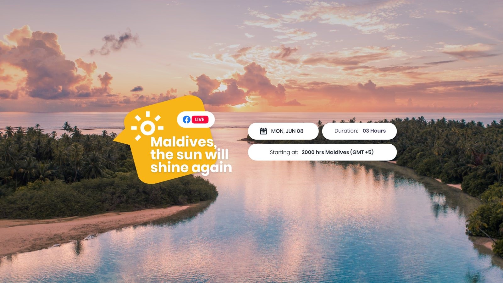 8 июня 2020 г. на официальной странице Мальдив в Facebook прошел онлайн марафон «Maldives: The Sun Will Shine Again». В трехчасовом стриме приняли участие представители министерства по туризму и туристической отрасли Мальдивских островов. Руководитель офиса по туризму Мальдив (MMPRC) г-н Thoyyib Mohamed рассказал, какая масштабная работа проводится на Мальдивах, пока туризм находится в состоянии ожидания: «Мальдивы сейчас активны как никогда и неустанно работают над реализацией как краткосрочных проектов, так и долгосрочного плана, направленного на преодоление последствий пандемии».