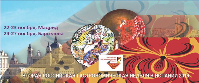 В период с 22 по 27 ноября 2016 года в Мадриде и Барселоне пройдёт Вторая Российская гастрономическая неделя. В Испанию приезжают именитые российские шеф-повара из разных регионов страны. Андрей Матюха представит кухню Юга России, Кумсият Мирзаева – гастрономические специалитеты Кавказа, Юлия Конгурова и Сергей Минаков – кухню центральных регионов России, Сергей Юрин познакомит с традициями застолья Урала, а шефы из Санкт-Петербурга, Владимир Ревва и Александр Гущин, приготовят арт-меню по мотивам творчества художников Малевича и Кандинского.
