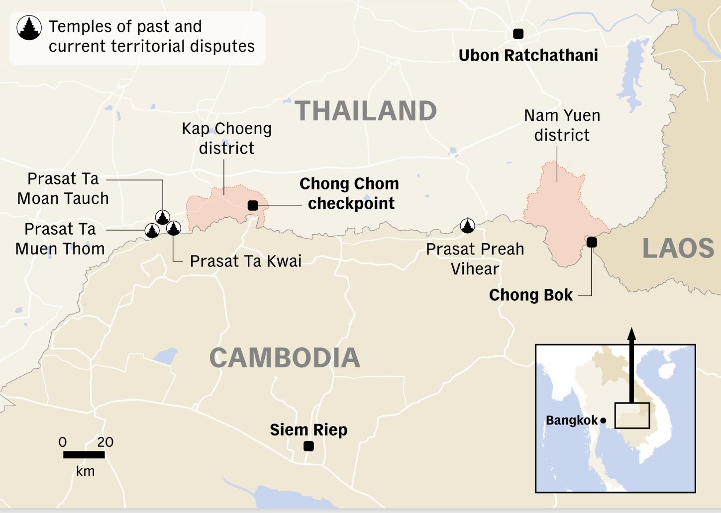 Причиной территориального спора Таиланда и Камбоджи является принадлежность храмовых комплексов Преах Вихеар (Прэахвихеа) и Та Моан Тхом — религиозных комплексов, строившихся с IX по XII века в период Кхмерской империи.