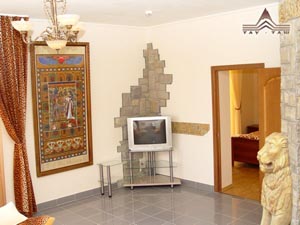 - VIP трехкомнатный "Соблазн": хотите побаловать себя негой и роскошью? Аура номера сравнима со сладким состоянием пробуждения; игра света - теней с солнечными бликами и лунными лучами настроят Вас на романтический лад; прикосновения нежного убранства номера провоцируют другие нежные прикосновения; телевизор (7 каналов), телефон, просторный гардероб, универсальный стол, удобное рабочее место, 2 кровати queen size, мини-бар, ковровое покрытие, удобная современная мебель, подогреваемый пол, отделка стен натуральным камнем, новая современная сантехника, 2 балкона; уборка номера 1 раз в день.