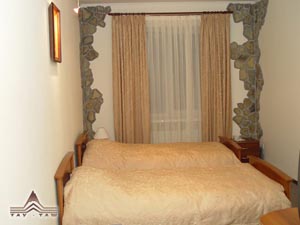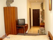 - Однокомнатные повышенной комфортности (4): телевизор (7 каналов), телефон, просторный гардероб, 2 кровати queen size, ковровое покрытие, удобная современная мебель, подогреваемый пол, отделка стен натуральным камнем, новая современная сантехника; уборка номера 1 раз в день.