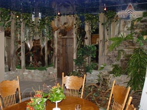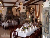 - Ресторан: ресторан комплекса - это "государство в государстве". Здесь не просто место, где можно вкусно поесть и побаловать себя изысканными напитками. Здесь всегда представление. Украшением зала является огромный очаг, на открытом огне которого на ваших глазах готовится аппетитное блюдо. Все как в средневековом зале замка.