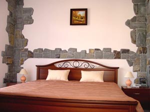 - VIP трехкомнатный "Старый Замок": "Мой дом - моя крепость", только в Замке, и только для Вас, гул шагов, по каменному полу, тяжелые мечи и рыцарские доспехи; Ваша прекрасная дама имеет возможность сравнить себя с незнакомками, смотрящими с картин на Вас; телевизор (7 каналов), телефон, просторный гардероб, универсальный стол, удобное рабочее место, 2 кровати queen size, мини-бар, ковровое покрытие, удобная