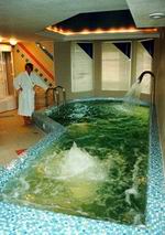 Сауна: удобная мебель, камин, бассейн, оборудованный эффектом имитации волн и гидромассажем, пародушевая кабина, банкетный стол, телевизор, телефон.