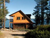 Благоустроенный коттедж, расположенный на самом берегу озера, с балконом, прекрасным видом на озеро, сауной и собственным пирсом.
