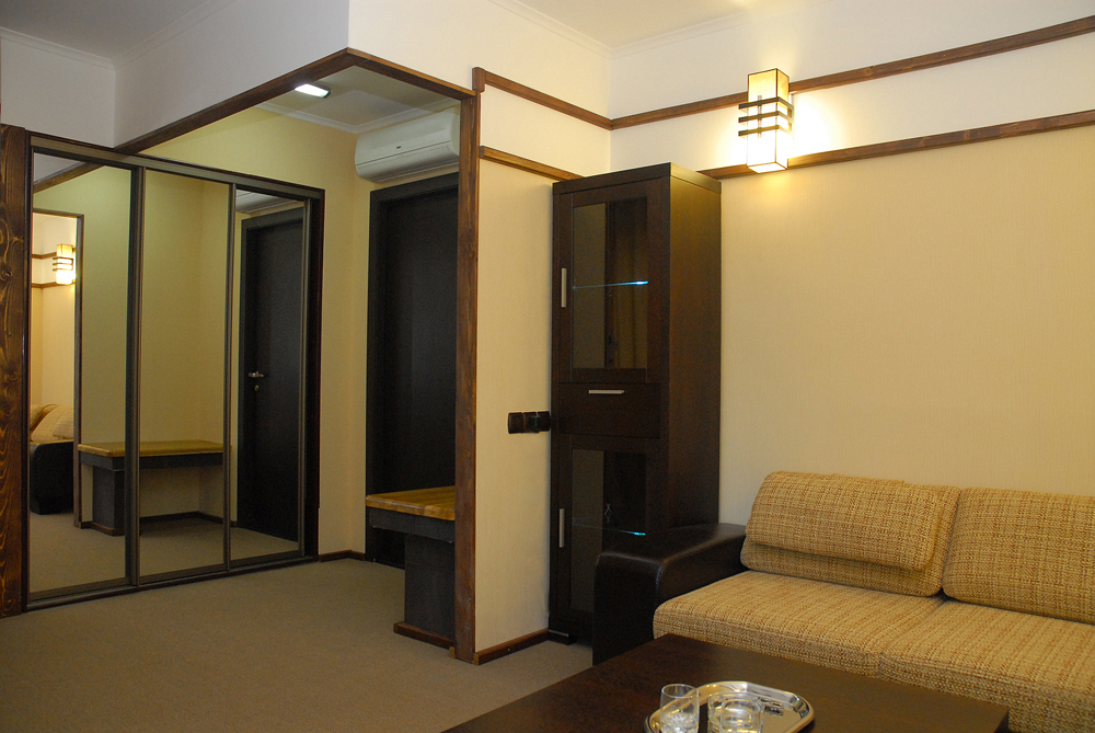На ресепшене нас встретила приветливая девушка Вера. Очень быстро нашла нашу бронь, дала необходимые пояснения и поселила в полулюксе на 2-м этаже.