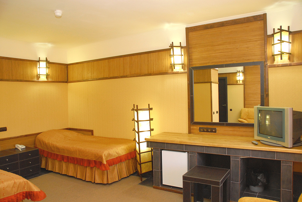 Номер был просторный, с дополнительной кроватью для ребёнка, телевизором и холодильником. Минибар был пуст, но мы на него и не рассчитывали. Интерьер номера оставил приятное впечатление. Особенно понравилось решение освещения: просто и функционально.