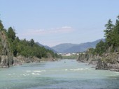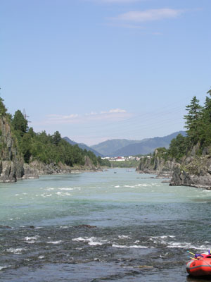 Расположен на берегу реки Катунь, но не далеко от центра.