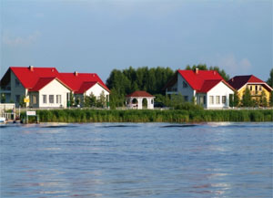 На территории комплекса уютно расположились роскошные двухэтажные коттеджи в разнообразных архитектурных стилях: финские деревянные домики, Словенские сельские дома, вологодские бревенчатые избы, альпийские "шале". Все коттеджи полностью меблированы, в них имеются закрытые веранды с летней мебелью, камины, сауны, кухни, оборудованные и оснащенные всем необходимым.