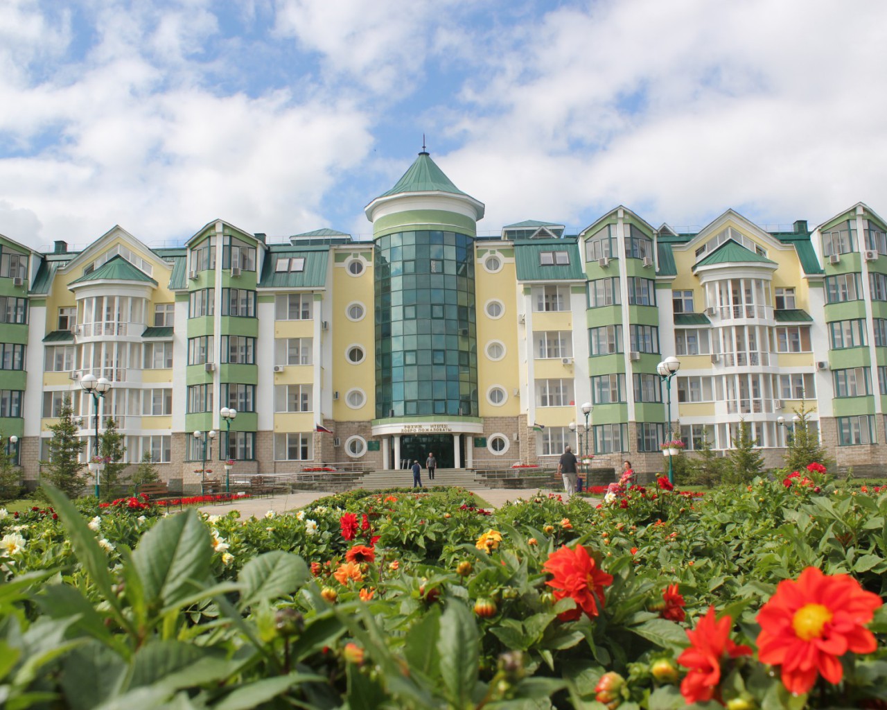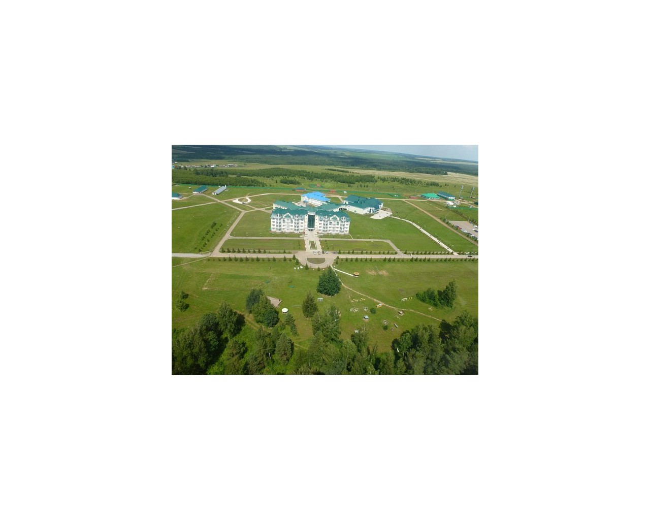 Здравница представляет собой единый комплекс из пятиэтажного спального корпуса с мансардами, столовой, двухэтажного лечебного корпуса, центра досуга, соединенных между собой светлыми и теплыми переходами.
