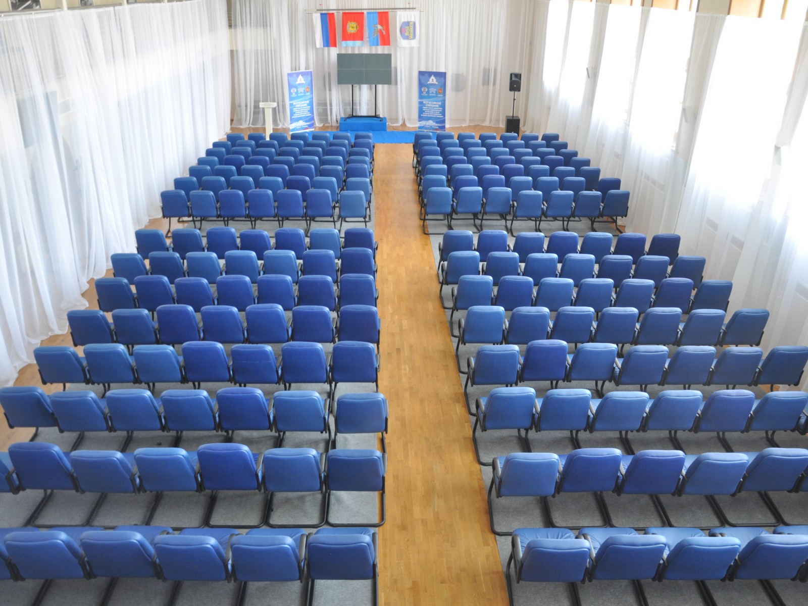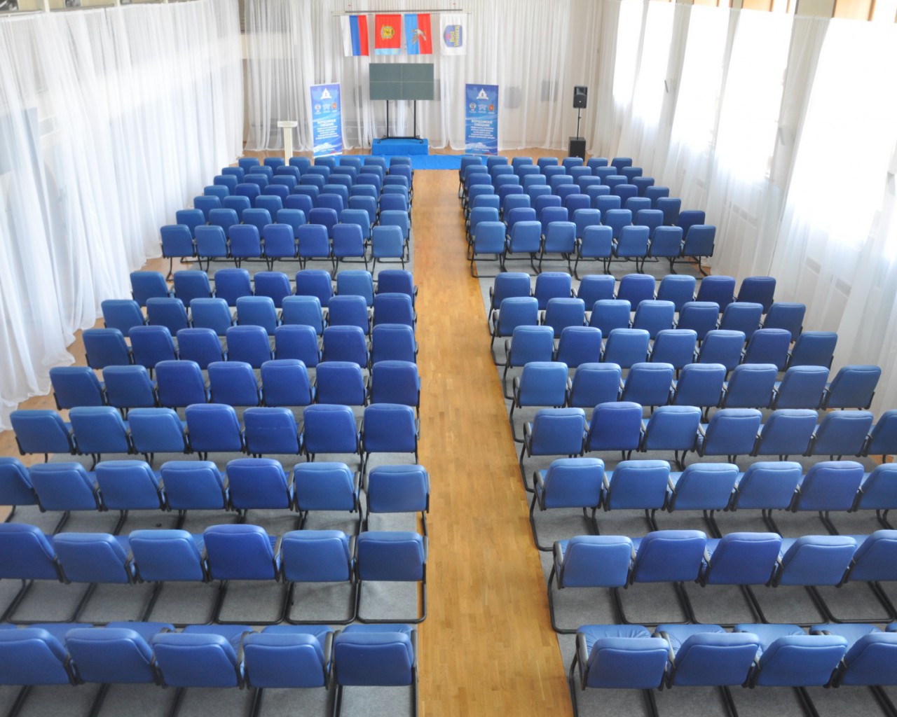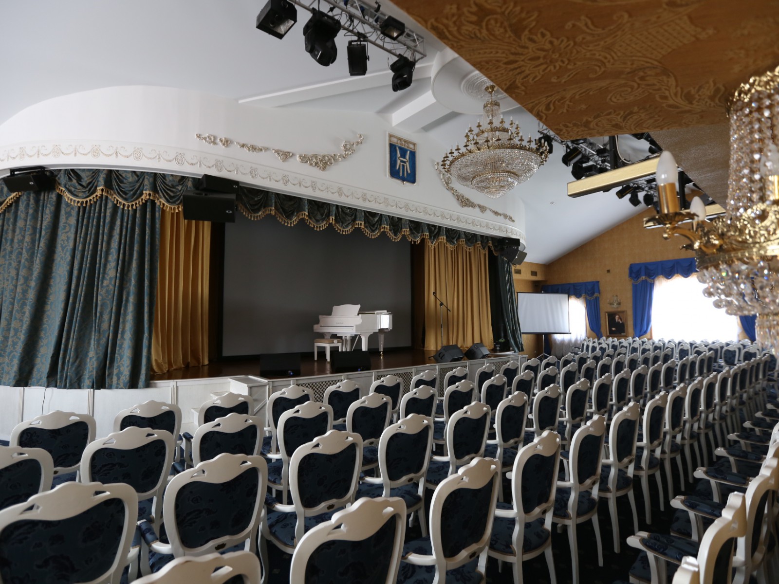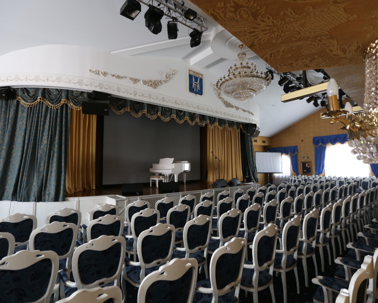 Киноконцертный зал: отлично подходит для самых разнообразных мероприятий от конференций до праздничных банкетов. Наличие сцены и профессионального светового, звукового и видео оборудования удовлетворят вкусам самых взыскательных гостей. Максимальная вместимость – 250 человек при рассадке «театром».