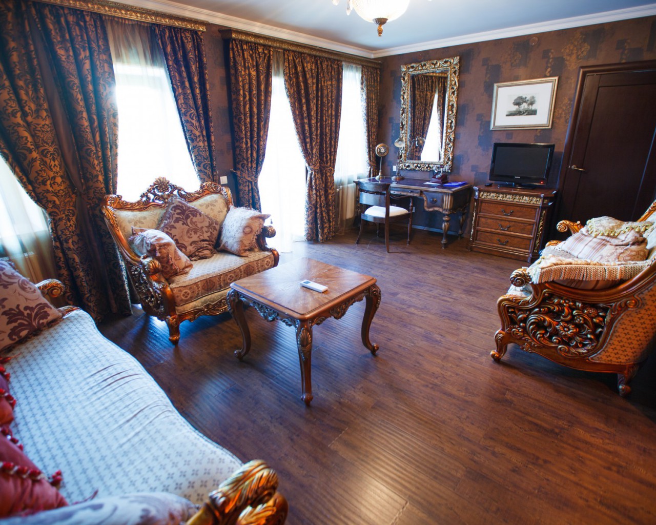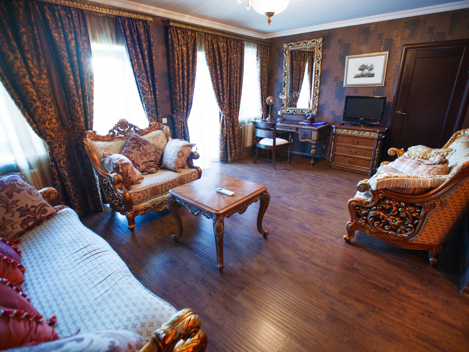 Особый стиль. Каждый номер отеля улучшенной категории уникален и неповторим. Изысканный дизайн, выполненный в стиле a la Russe, тщательно подобранная авторская мебель и предметы антиквариата перенесут Вас в атмосферу дворянской усадьбы XIX века. В стоимость номера включено: