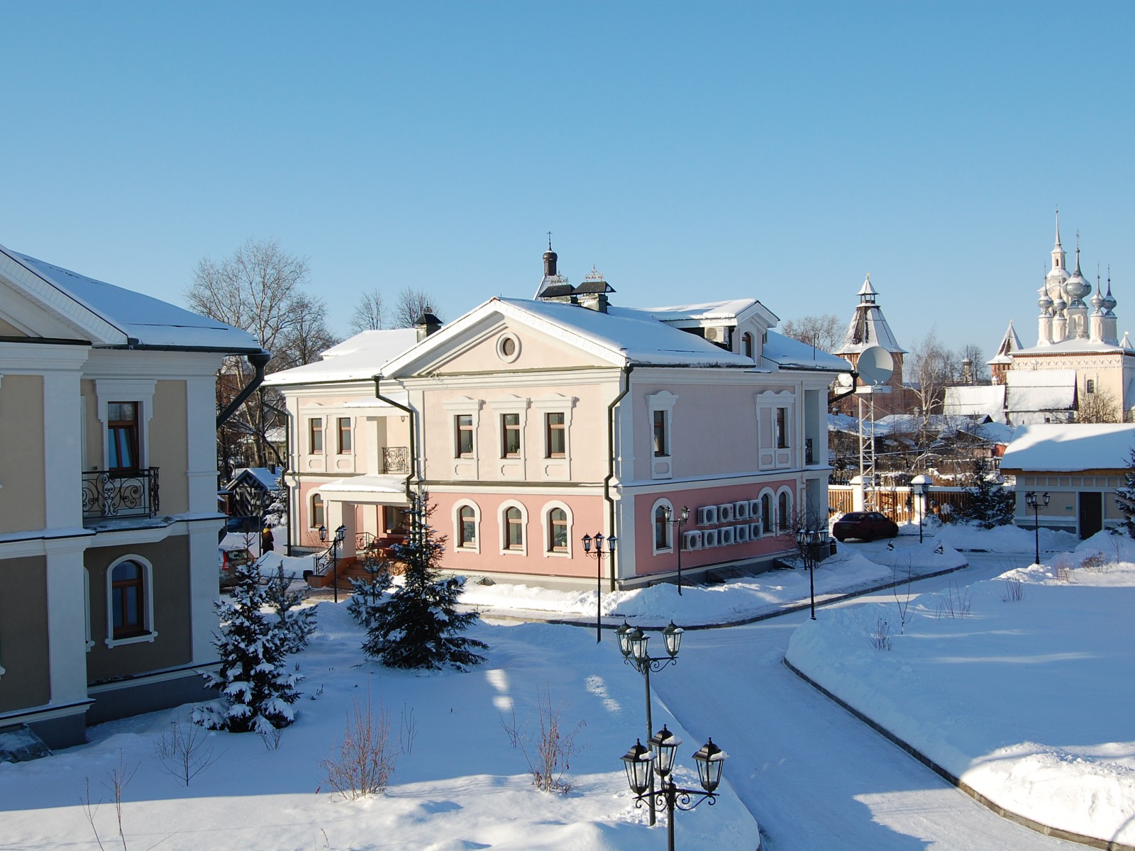 Туристический комплекс Арт-отель «Николаевский Посад», официально сертифицированный на категорию «4 звезды», удобно расположен в 200 км от Москвы в самом центре «Золотого кольца России» – городе-музее Суздале. Находясь вблизи основных достопримечательностей на главной улице Суздаля, Арт-отель органично вписывается в архитектурный ансамбль города и полностью передаёт его атмосферу. Идеальное сочетание седой старины и современных технологий позволяет организовать не только индивидуальный и семейный отдых, а также деловые мероприятия, корпоративный досуг, спортивные соревнования и учебно-тренировочные сборы.