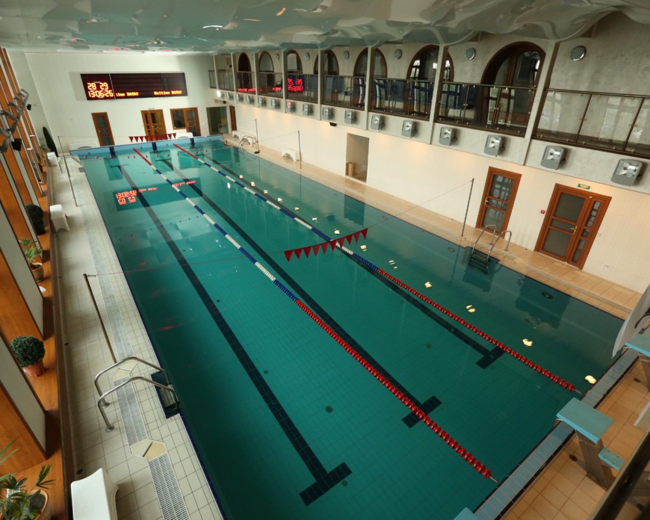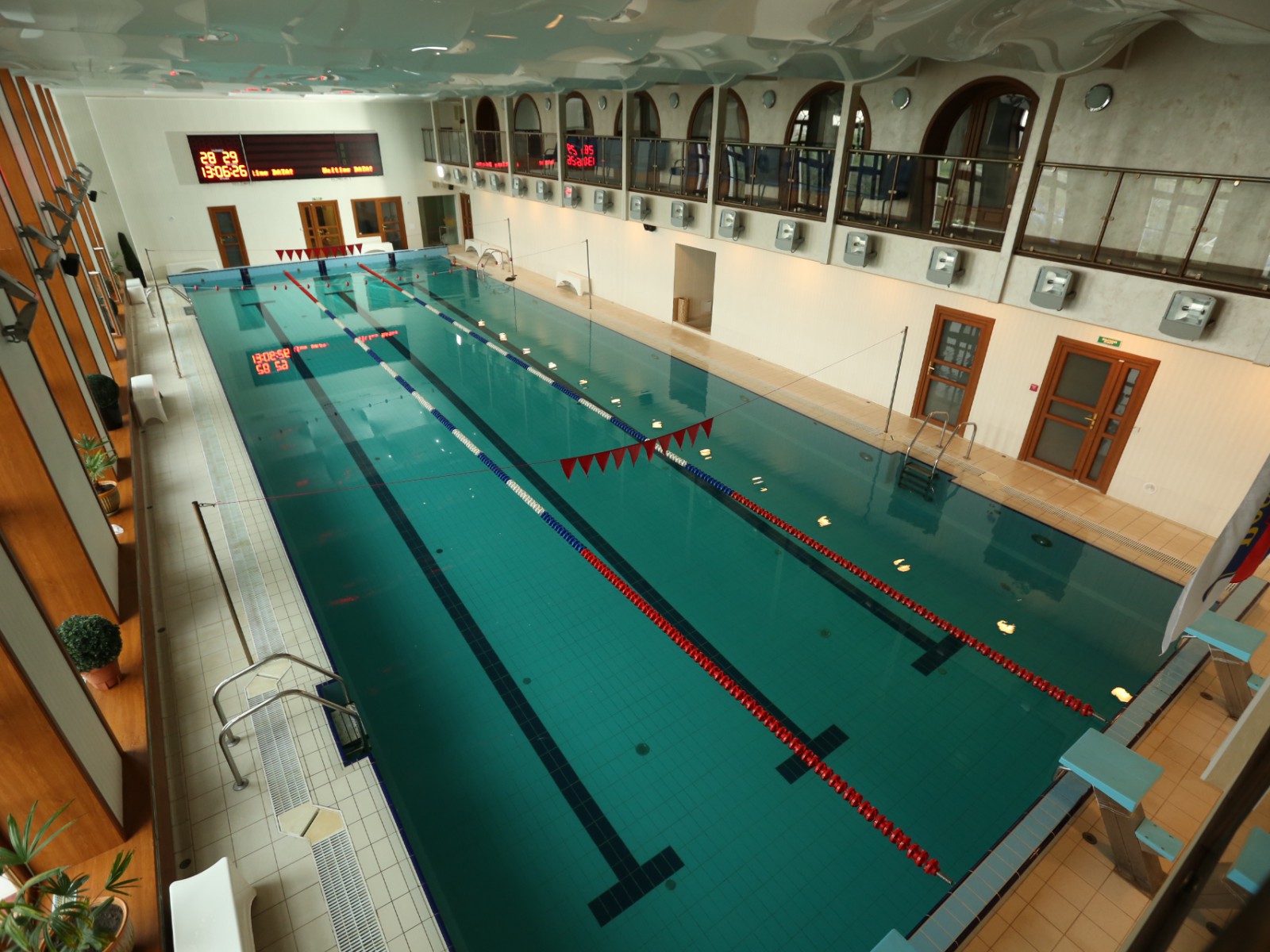 Бассейн: длина 25 метров, 5 дорожек, профессиональное электронное табло с возможностью вывода результатов заплыва. В бассейне используется вода из собственной скважины, прошедшая многоступенчатую систему фильтрации с использованием ионов серебра и меди. Предоставляются жилеты, нарукавники, пояса для детей и не умеющих плавать, всё необходимое для игры в водное поло.