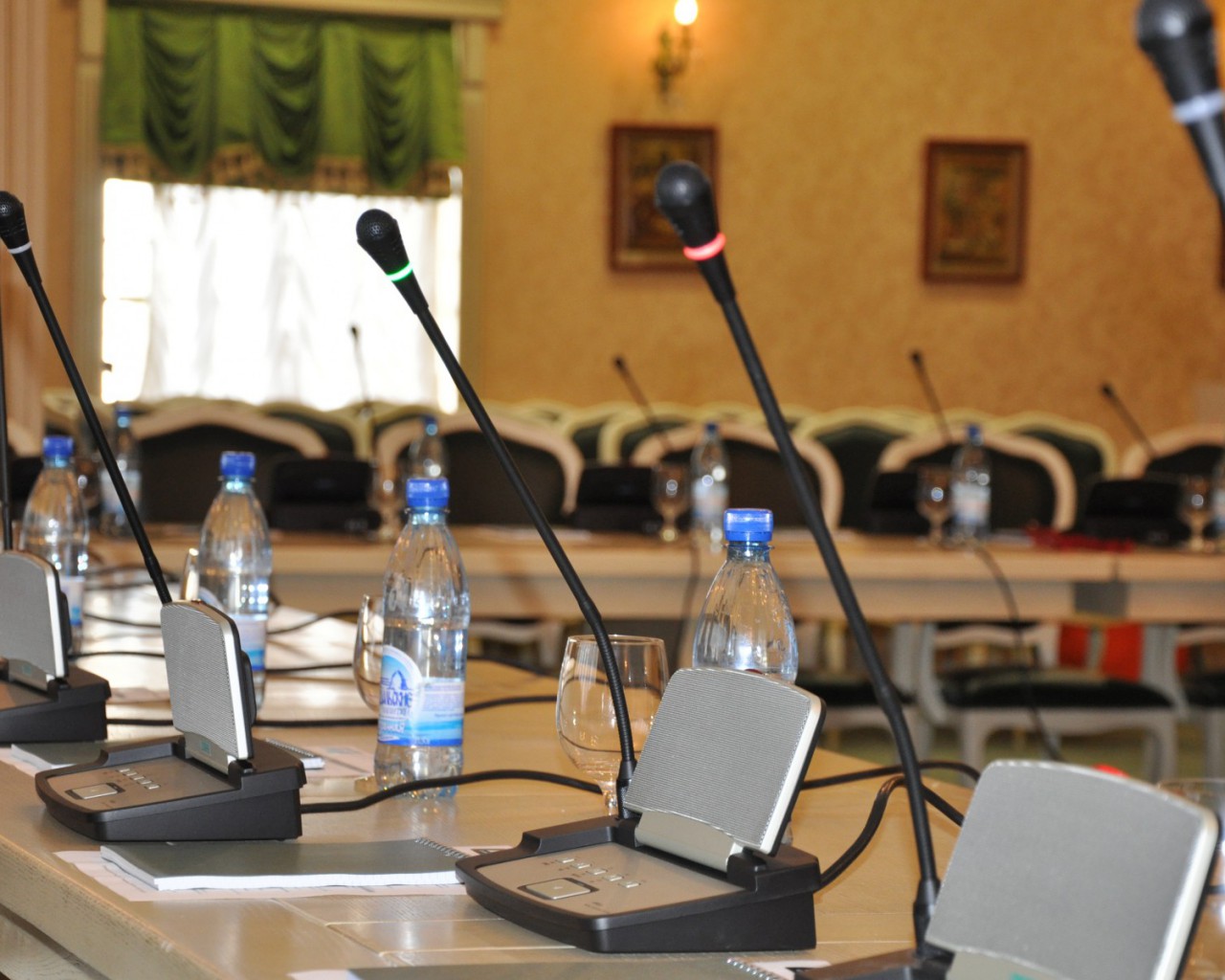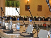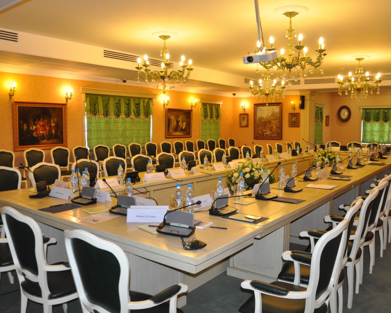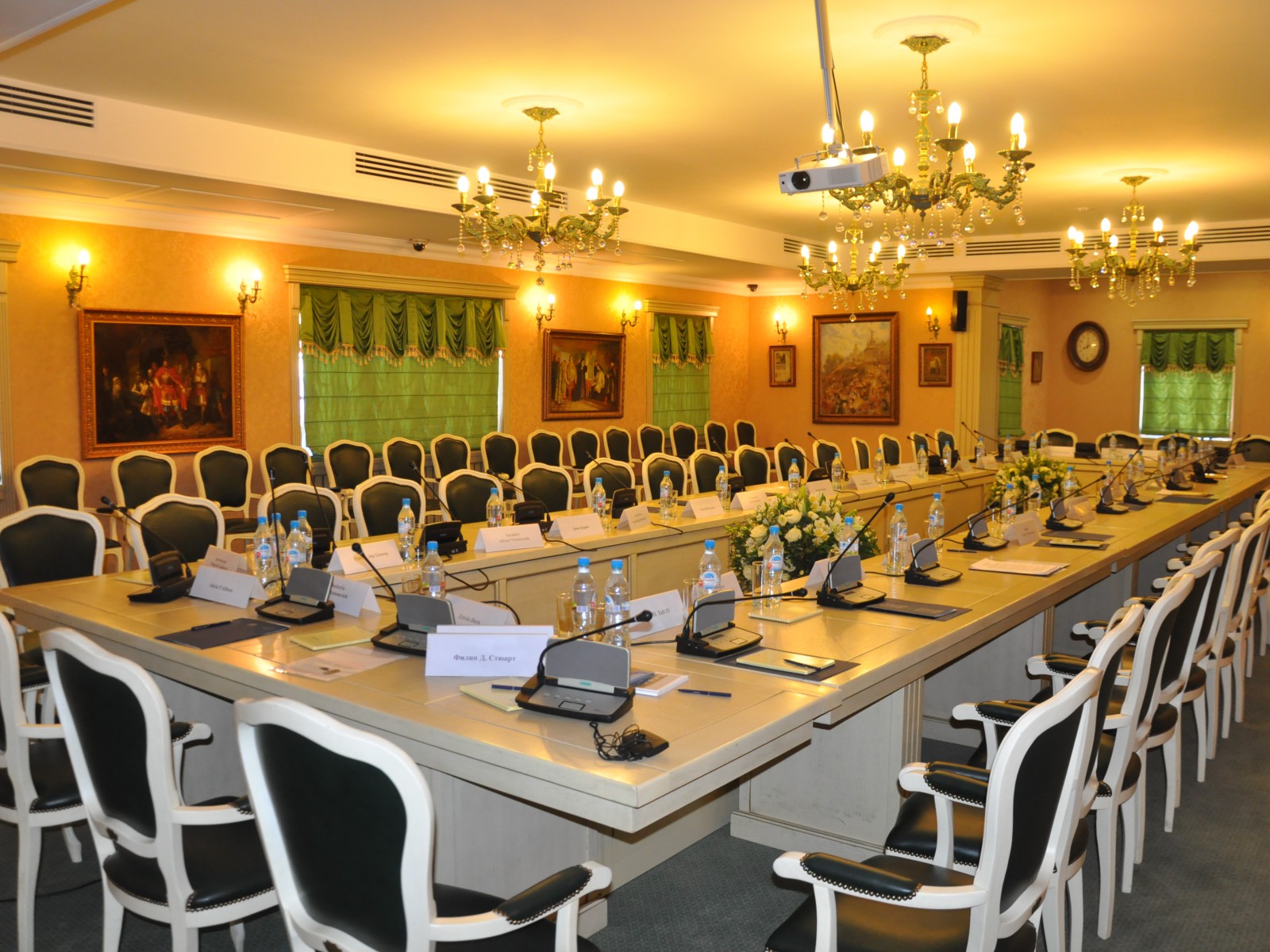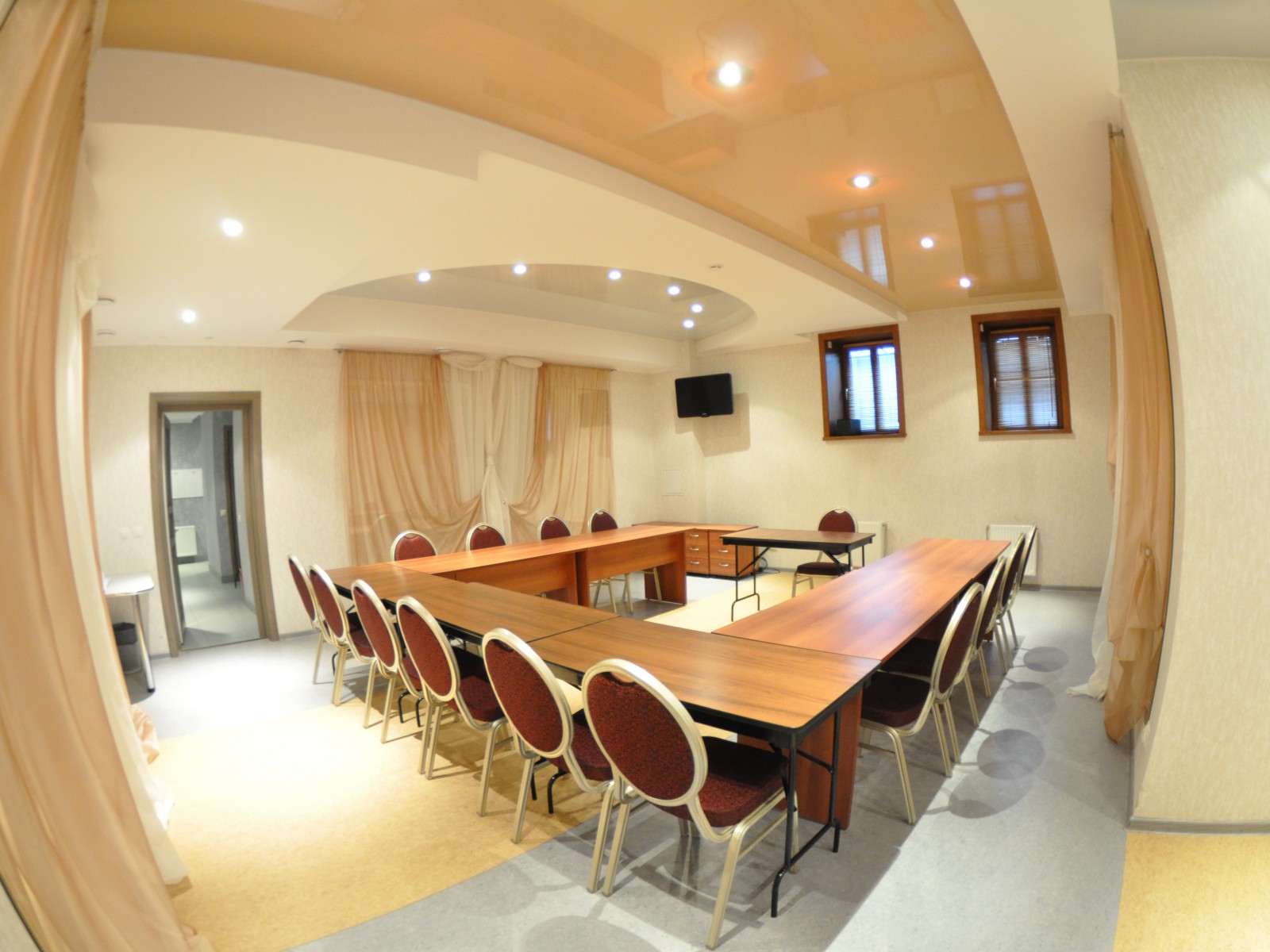 Конференц-зал: прекрасное место для проведения тренингов, семинаров и банкетов. Изысканная мебель и современное оборудование созданы для организации мероприятий международного уровня. Оборудован кабинами для синхронного перевода.