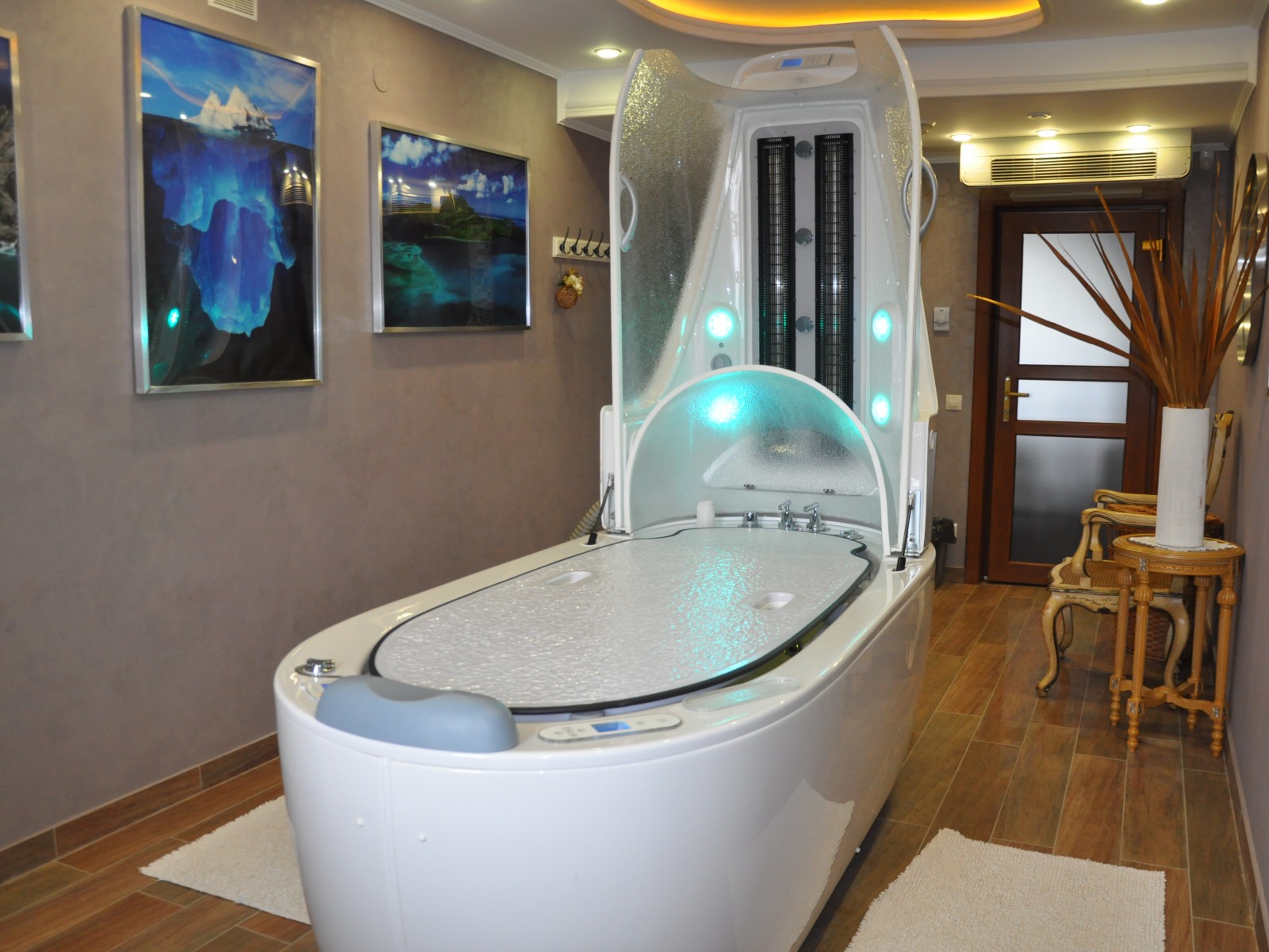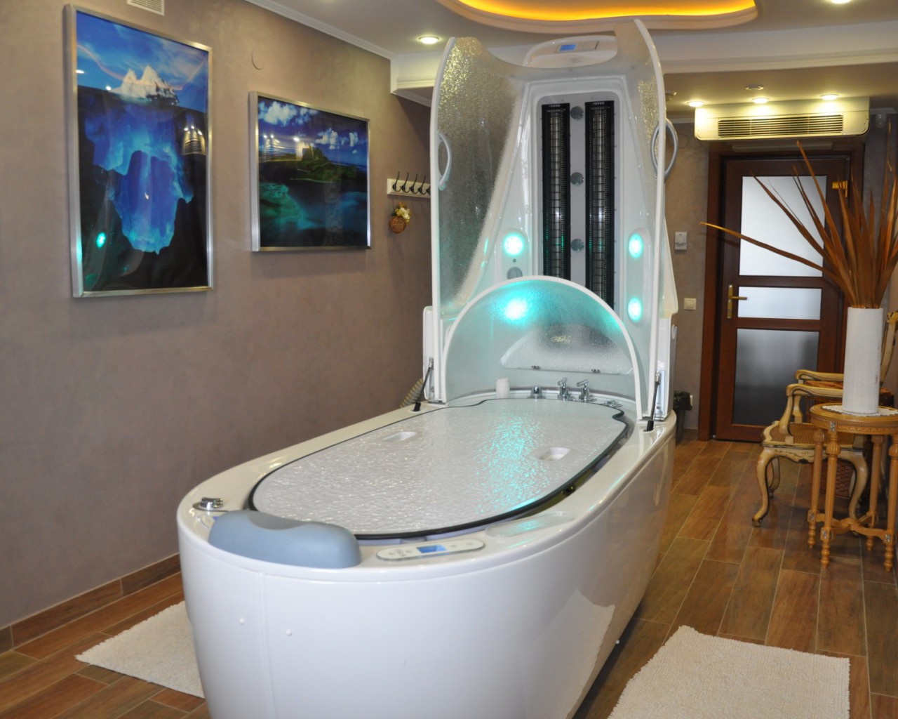 Мы рады Вам предложить капсулу для проведения водолечения и ароматерапии. Включает в себя душ Виши, гидромассажную систему, паровую сауну, возможность проведения жемчужных ванн и вибромассажа.