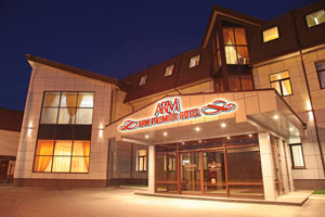 Как следует из названия отель принадлежит нашим южным друзьям, поэтому не советую ориентироваться на стоимость номера, которую вы увидите на сайте отеля или которую вам сообщат по телефону,- заплатите где-то в 1,5 раза больше, при этом персонал гостиницы с честными глазами вам будет доказывать что всё по честному, просто правила такие... одним словом АРМ...Н отель. За окнами оживленная траса.