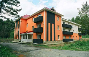 - Домик (8 комнат по 2-3 места, холл, корпусная мебель, кухня оборудована электроплитой, холодильником; санузлы, ванная комната) (макс кол-во 17 чел.);