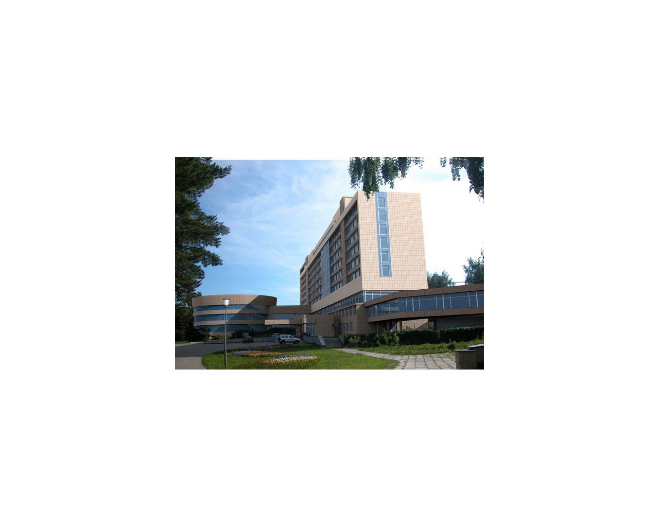 - Лечебный блок: лечебный блок занимает два нижних этажа главного корпуса. В нем расположены диагностические и процедурные кабинеты, кабинеты врачей-специалистов, а также помещения сервисного назначения.