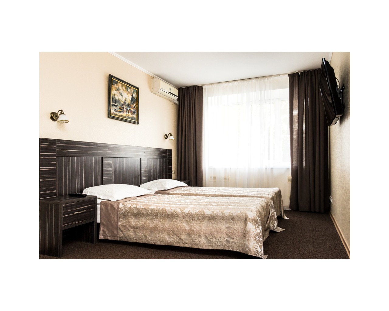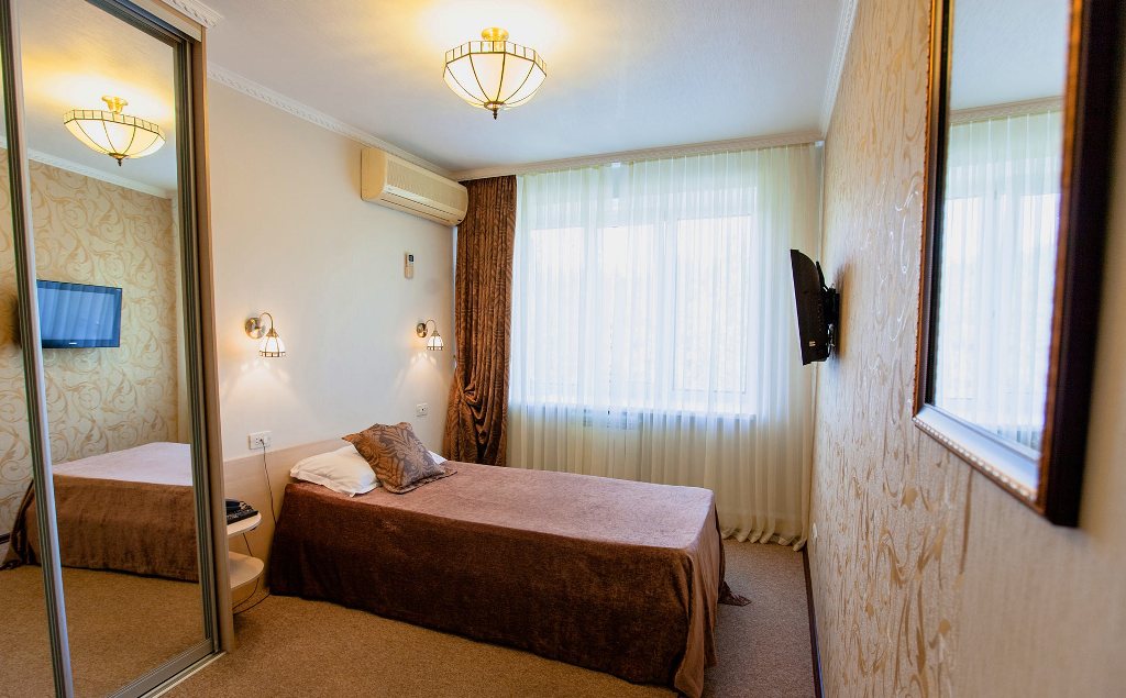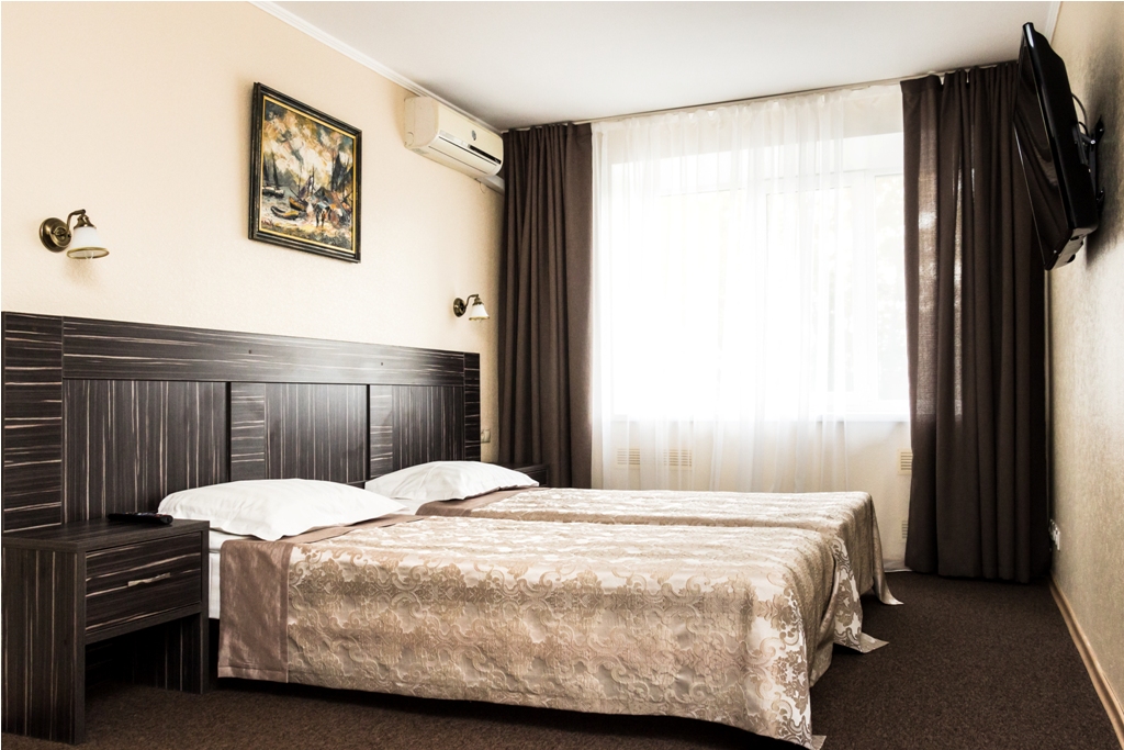 В номерах: телевизор, телефон, душ, холодильник, кондиционер.