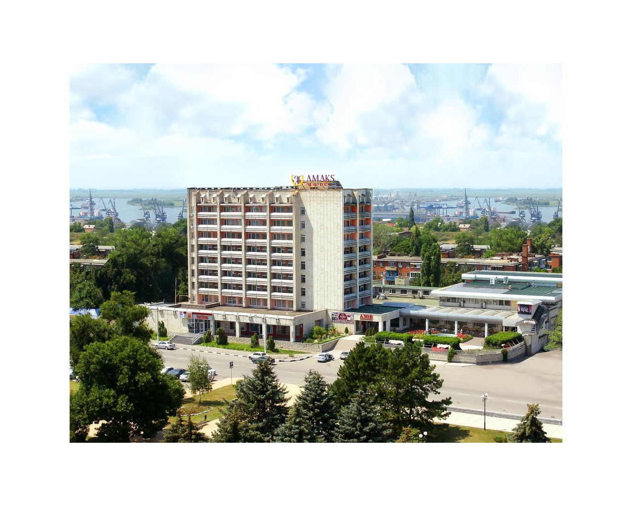 Гостиница «АМАКС Отель Азов», расположенная в центральной исторической части города, находится в 35 км от Азовского моря. 95 одноместных и двухместных комфортабельных номеров могут одновременно разместить до 170 человек. Все номера с удобствами, имеются лоджии.