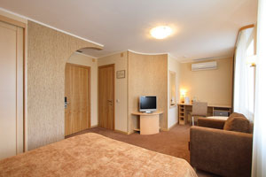 Все номера оснащены телевизором и предлагают уровень комфорта на любой вкус: от первоклассных номеров-студий до практичных 2-х и 3-местных номеров с общей ванной комнатой на два соседних номера.