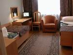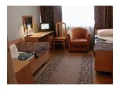 В гостинице 200 номеров. Все номера одноместные и двухместные. В каждом номере телевизор, холодильник, телефон, полный санузел.