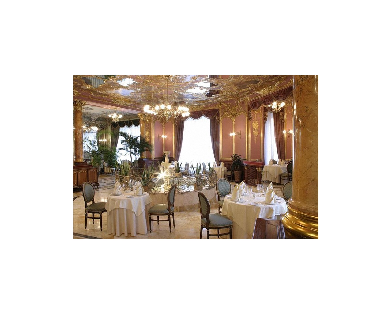 Главный зал ресторана "Савой" рассчитан на 100 посадочных мест. Роскошное оформление интерьера в стиле рококо создает неповторимую атмосферу торжественности и аристократического блеска. Искусно подсвеченный фонтан в центре зала, мраморные колонны, зеркальный потолок, настенная живопись, сочная зелень тропических растений - все это превращает зал в идеальное место как для проведения свадеб, торжеств, так и для деловых встреч за обедом или ужином в отеле "Савоя". Романтический ужин при свечах под звуки живой музыки, проведенный в ресторане "Савой", может стать незабываемым событием вашей жизни.