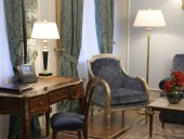 В номере установлен факсимильный аппарат с портом для подключения модема. В ванной комнате имеется фен и косметическое зеркало для бритья и макияжа, биде, напольные весы, дополнительный телефонный аппарат, халаты, а также набор туалетных принадлежностей класса VIP.