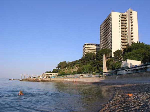 Находится в самой южной точке Черноморского побережья Крыма, в 500 метрах от галечного пляжа, на территории живописного субтропического парка. Этот парк - выдающийся памятник садово - паркового искусства конца XVIII века. В нем насчитывается около 200 видов крымских и экзотических растений. Факторов, определяющих климат курорта Мисхор, много. Это и географическая широта, и рельеф местности, и близость моря и леса, и многое другое. Климат курорта по своему типу - средиземноморский низкогорный прибрежный. Максимальная температура воздуха летом достигает + 32 - 45 С.