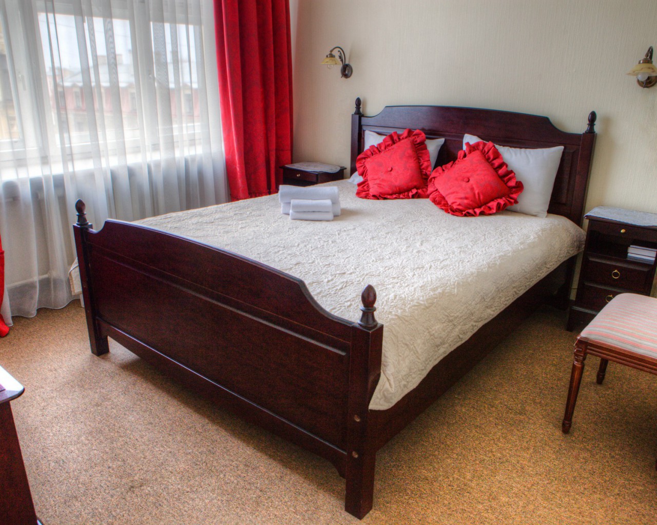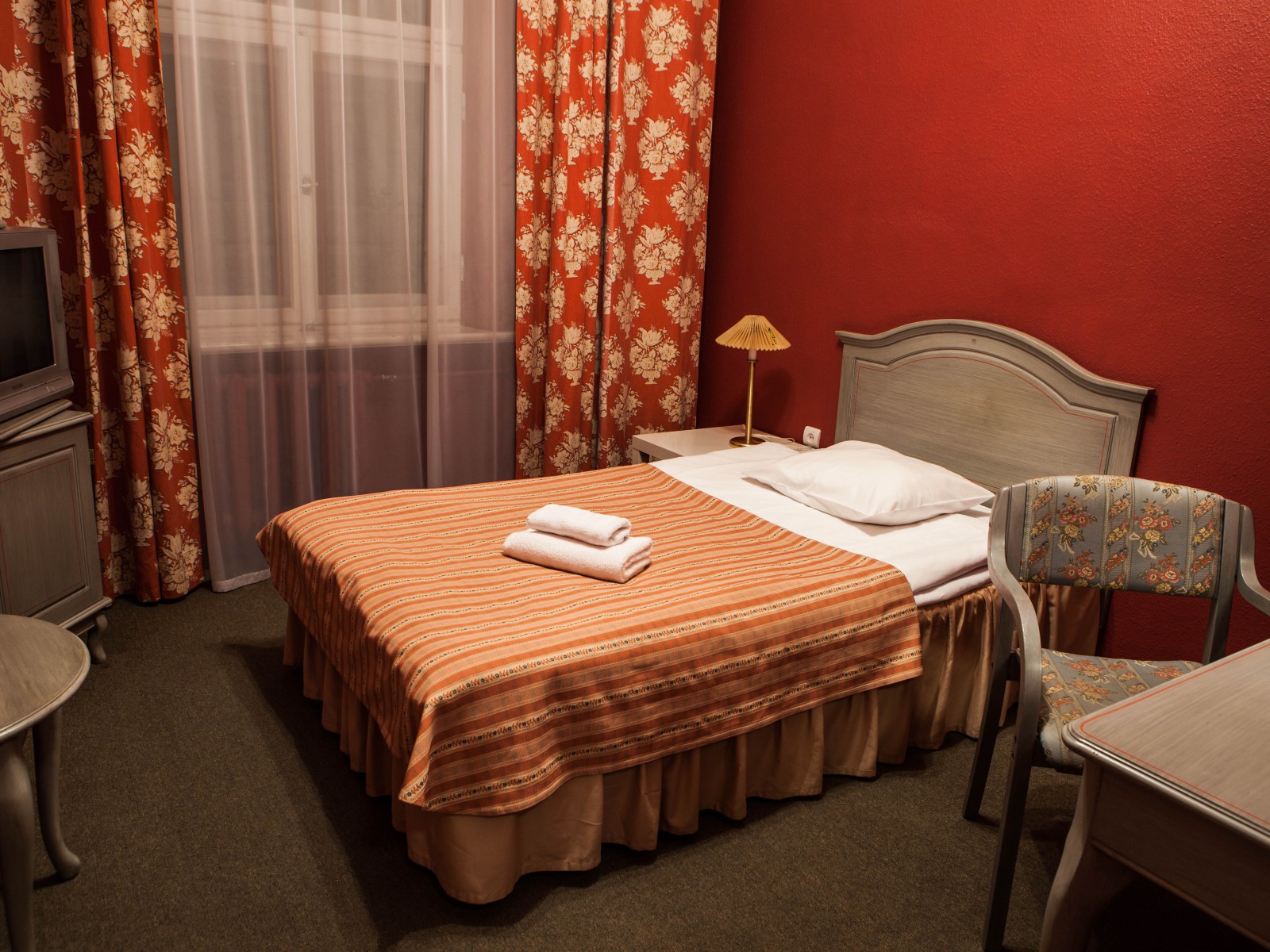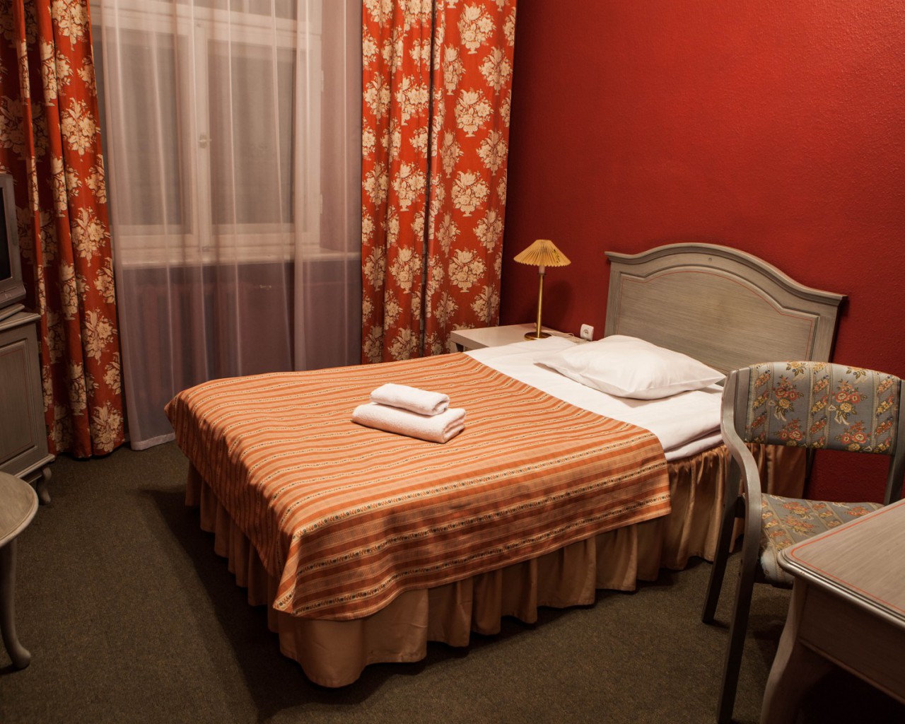 Расположена на одной из центральных улиц Риги. Эта прекрасно отреставрированная гостиница может удовлетворить желания клиентов с любым уровнем дохода. Вам предлагаются комфортабельные одноместные и двухместные номера в новом секторе, оборудованные телефоном, телевизором, современной ванной. Менее обеспеченным клиентам предлагаются номера в старом крыле, что отнюдь не исключает Вашего комфортабельного отдыха. Все номера сияют чистотой и обволакивают уютом.