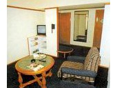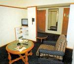 Люксы двухместные двухкомнатные: телевизор, телефон, мини бар, ванна, туалет.