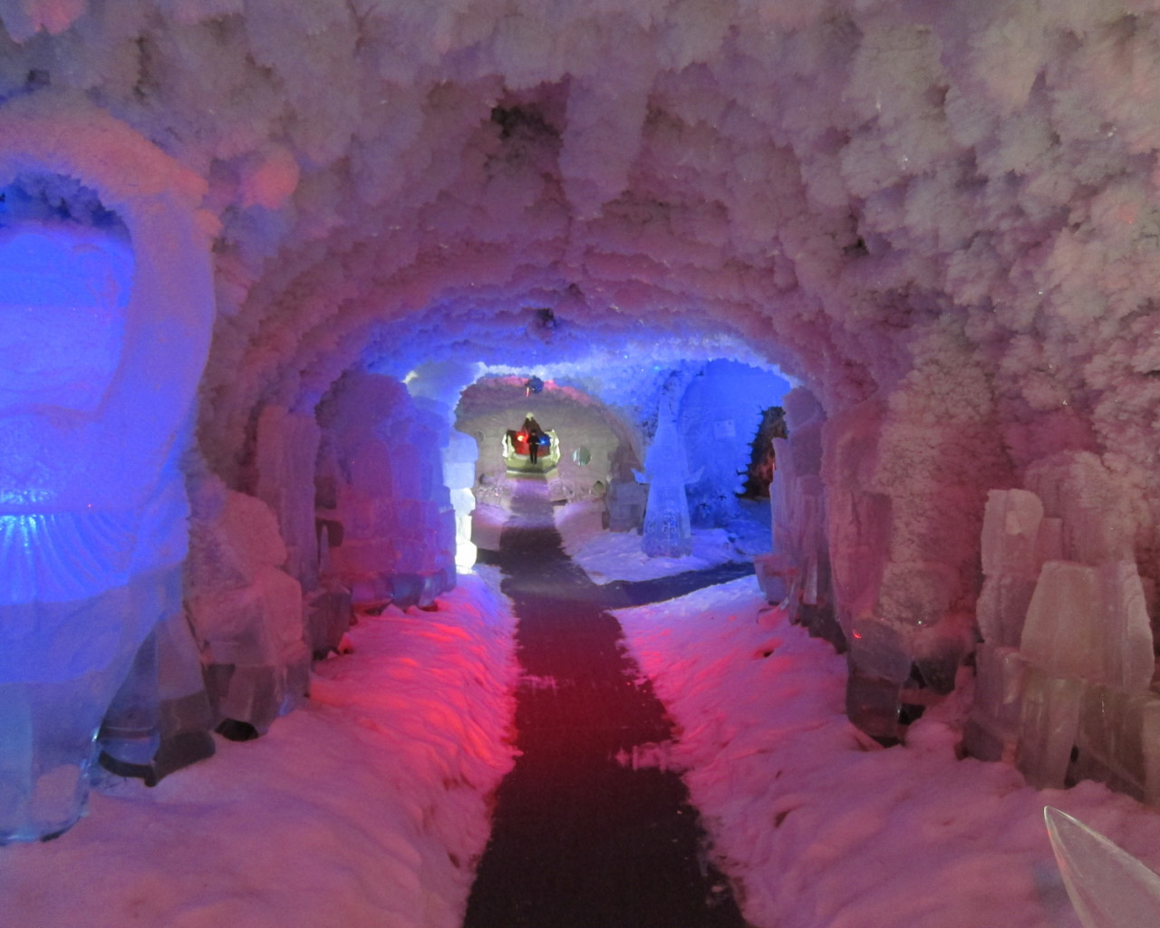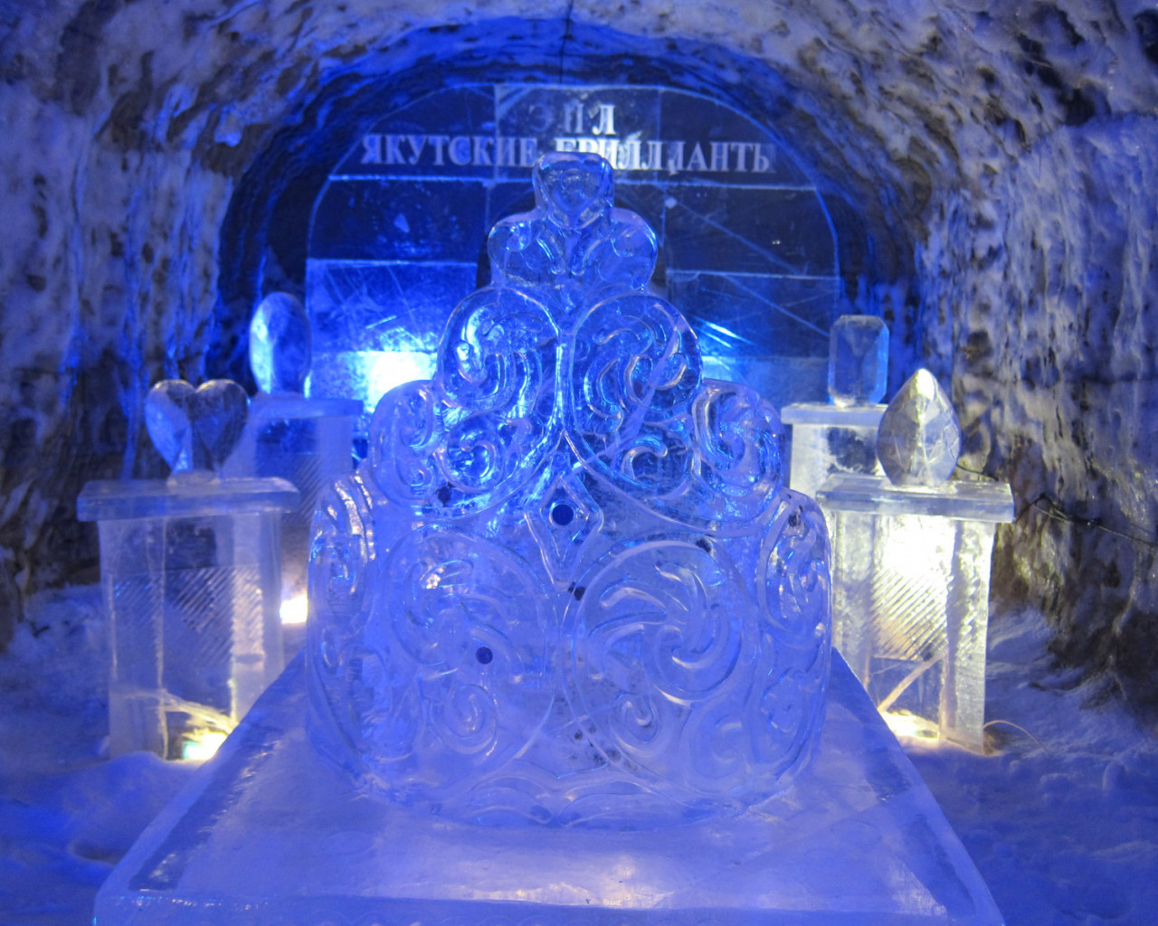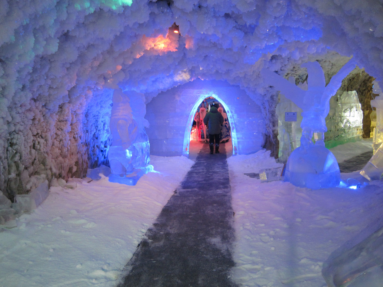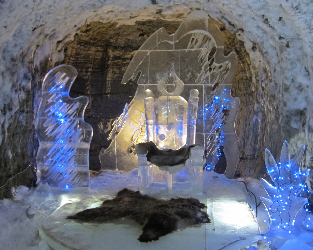 Ледяные скульптуры, ледяные комнаты, трон Деда Мороза
