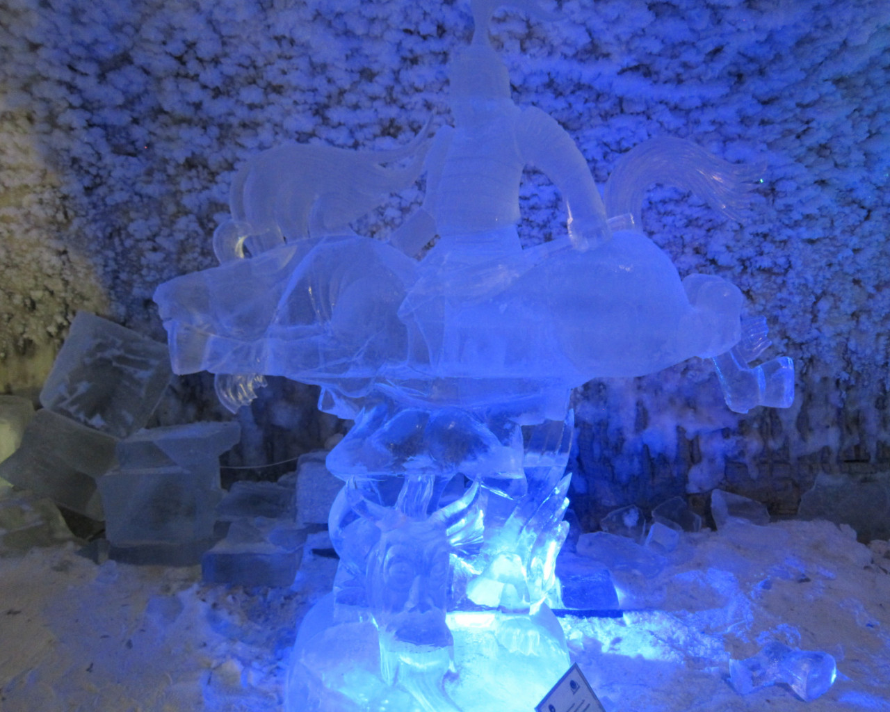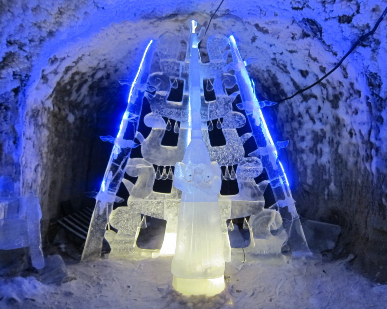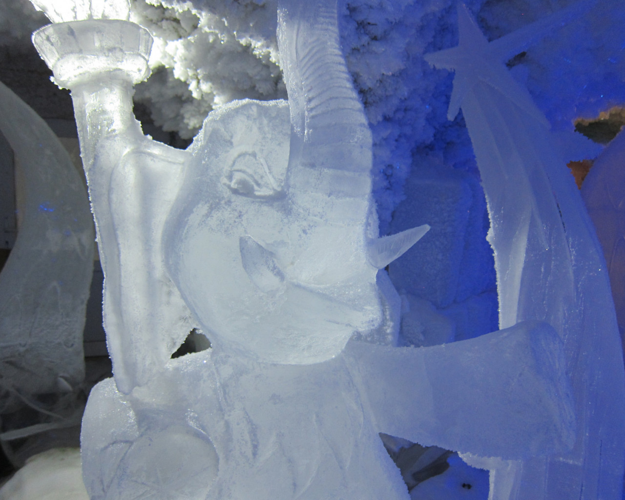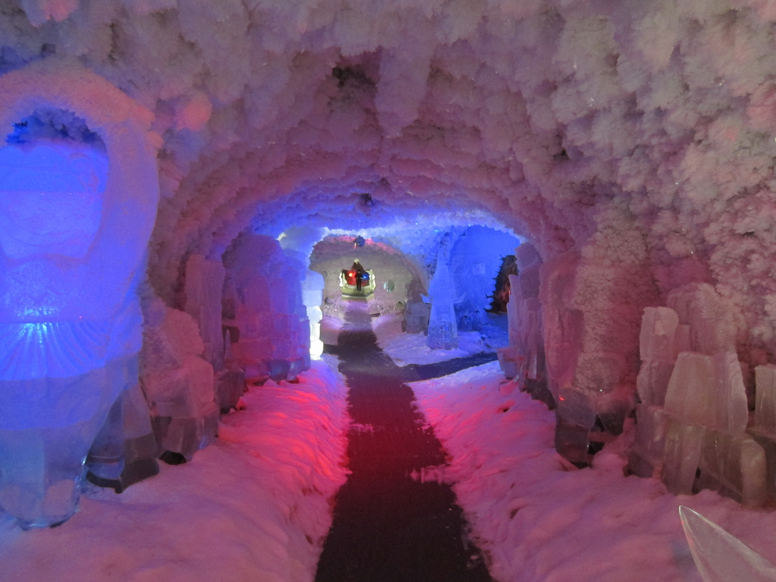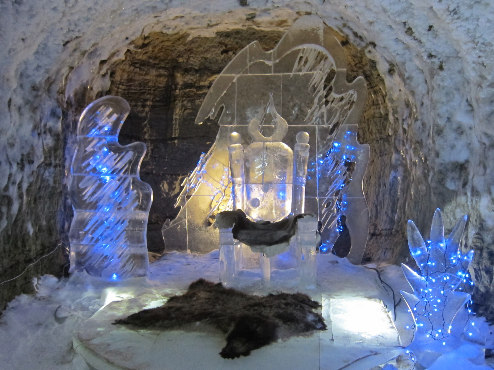 Ледяные скульптуры, ледяные комнаты, трон Деда Мороза