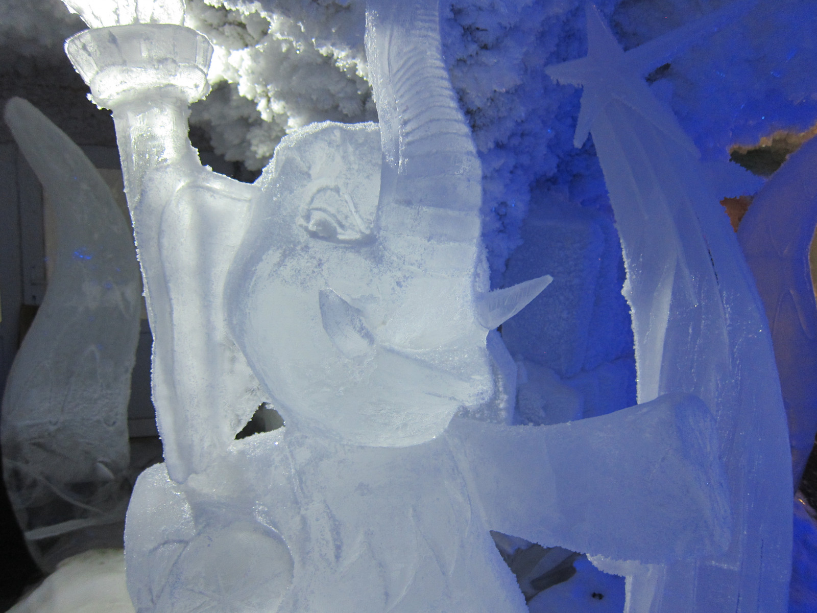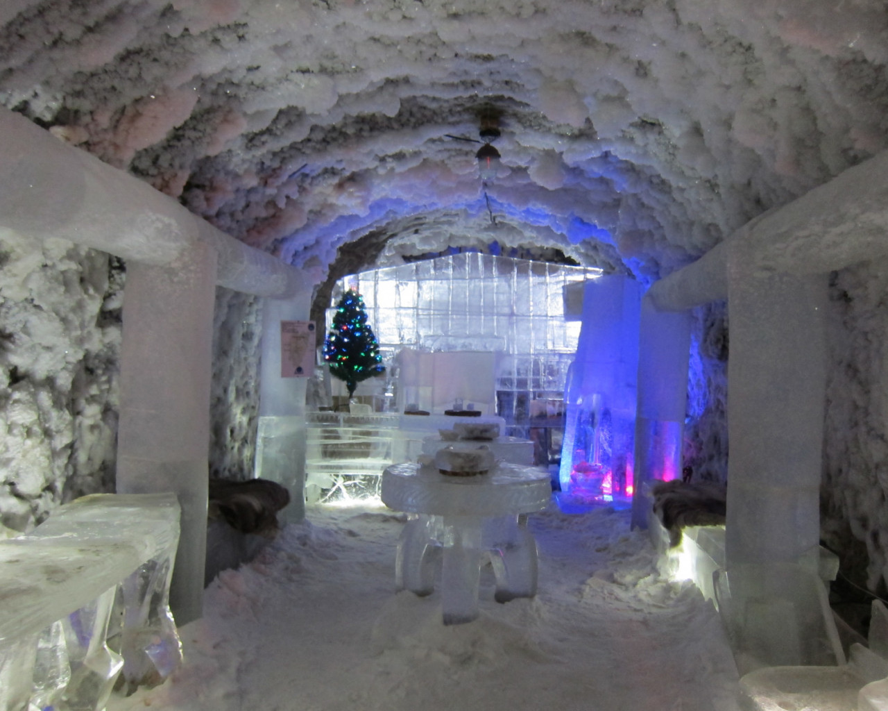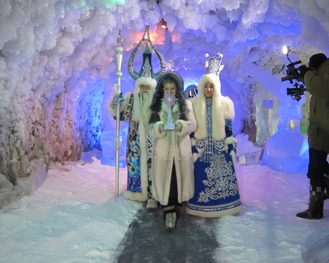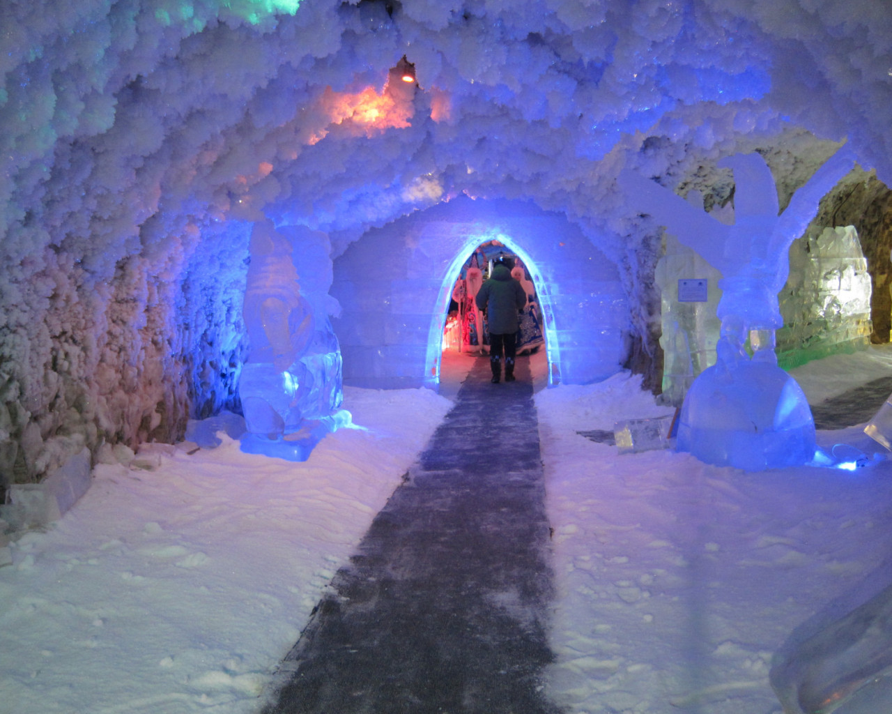 Ледяные скульптуры, ледяные комнаты, трон Деда Мороза