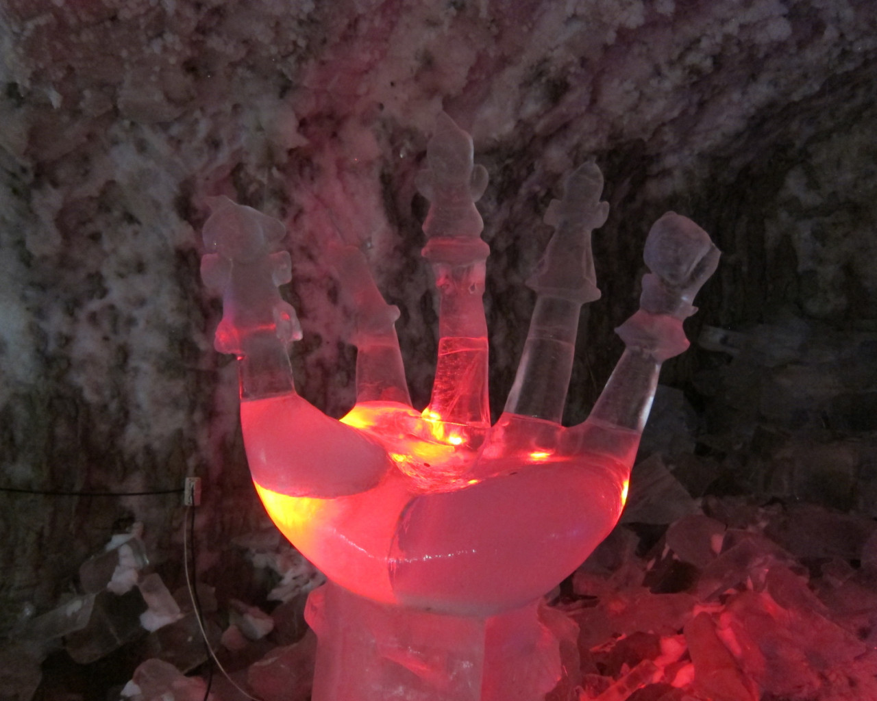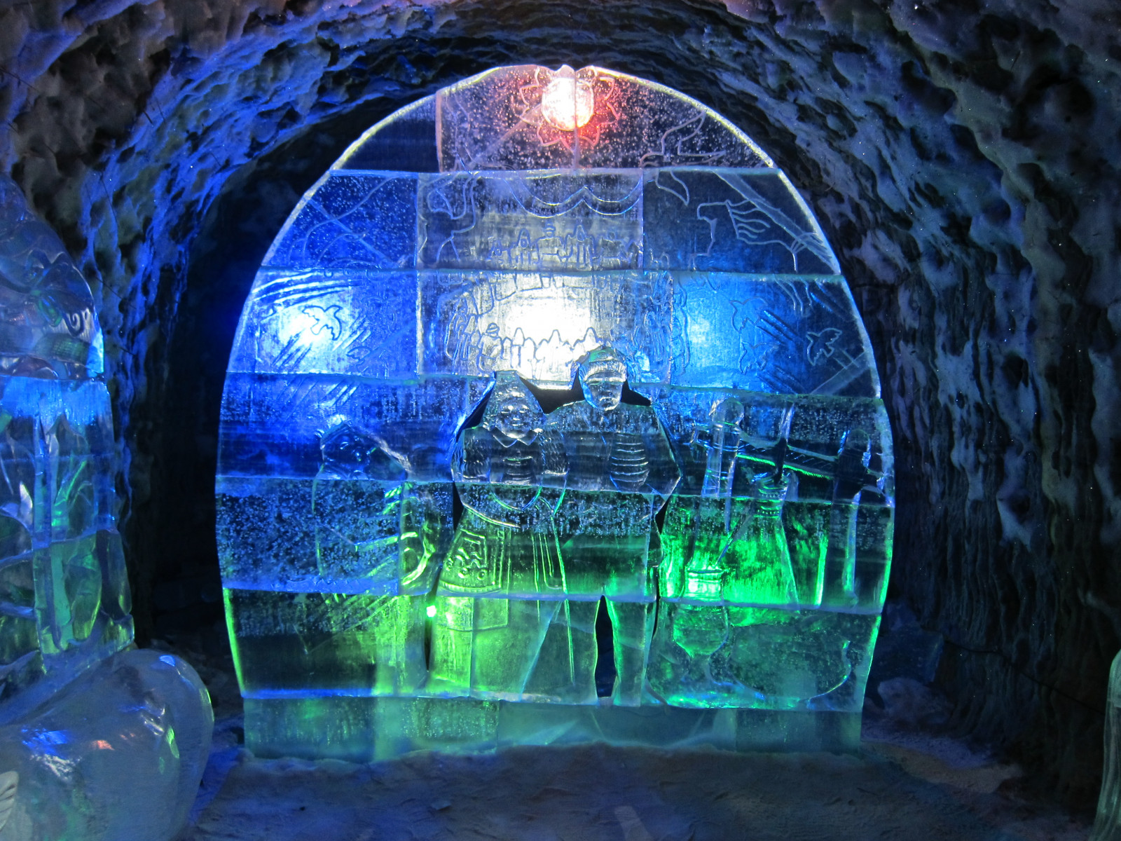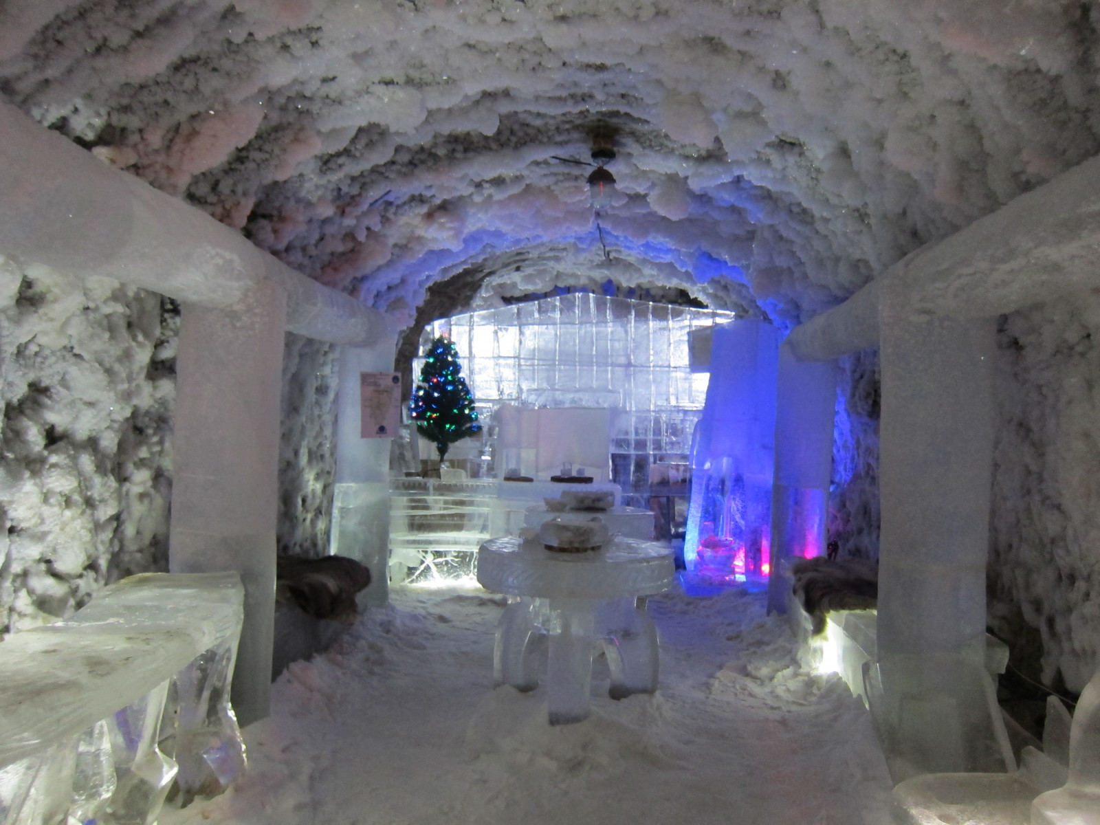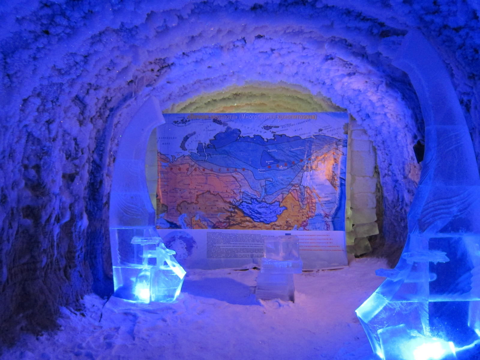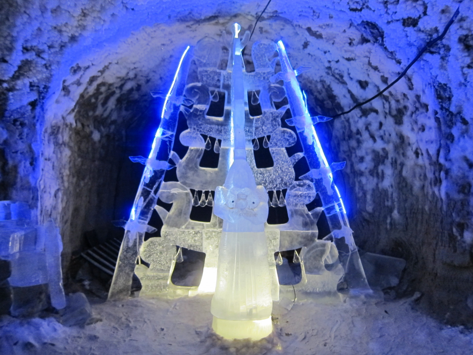 Ледяные скульптуры, ледяные комнаты, трон Деда Мороза