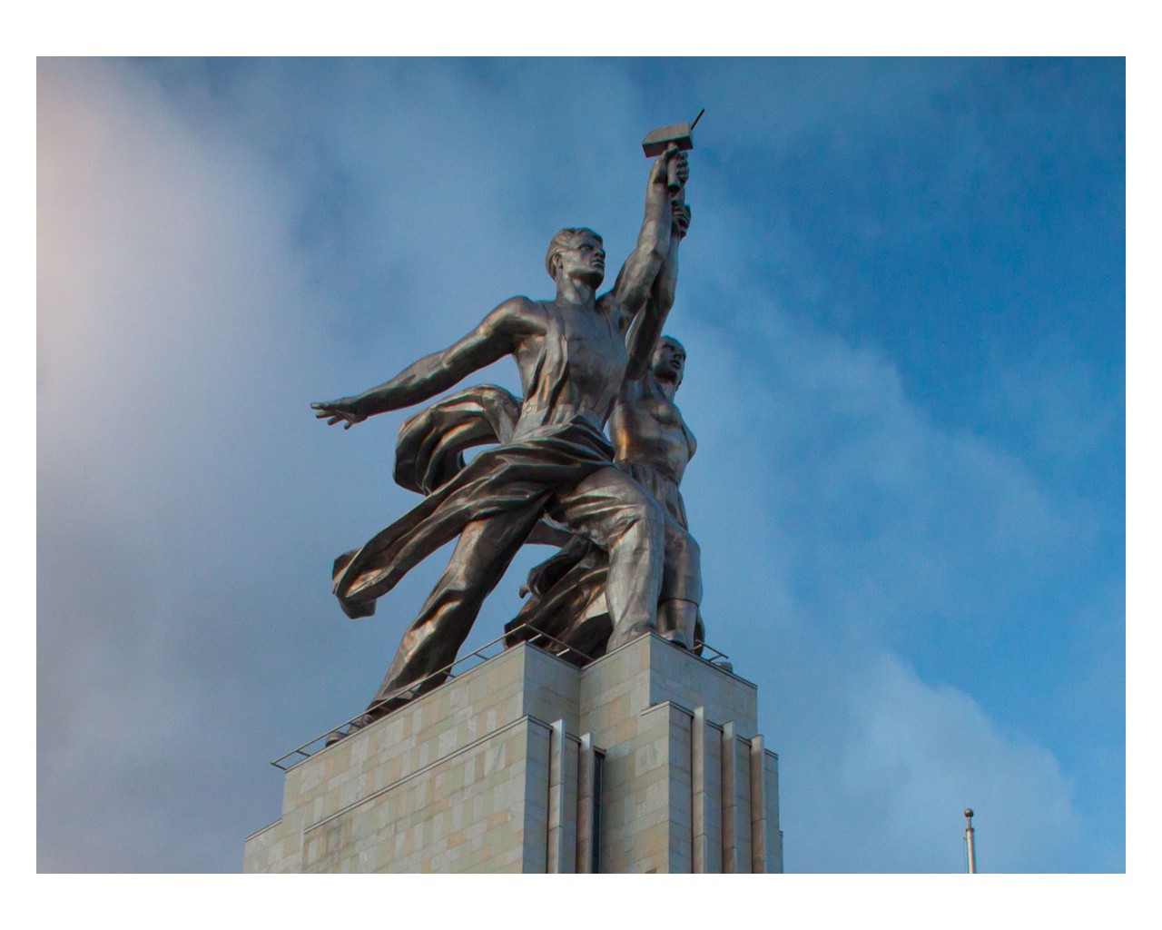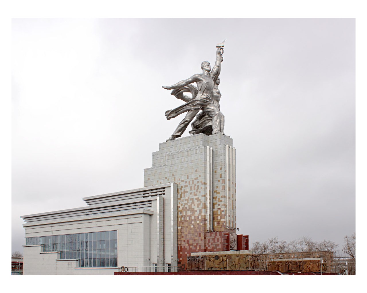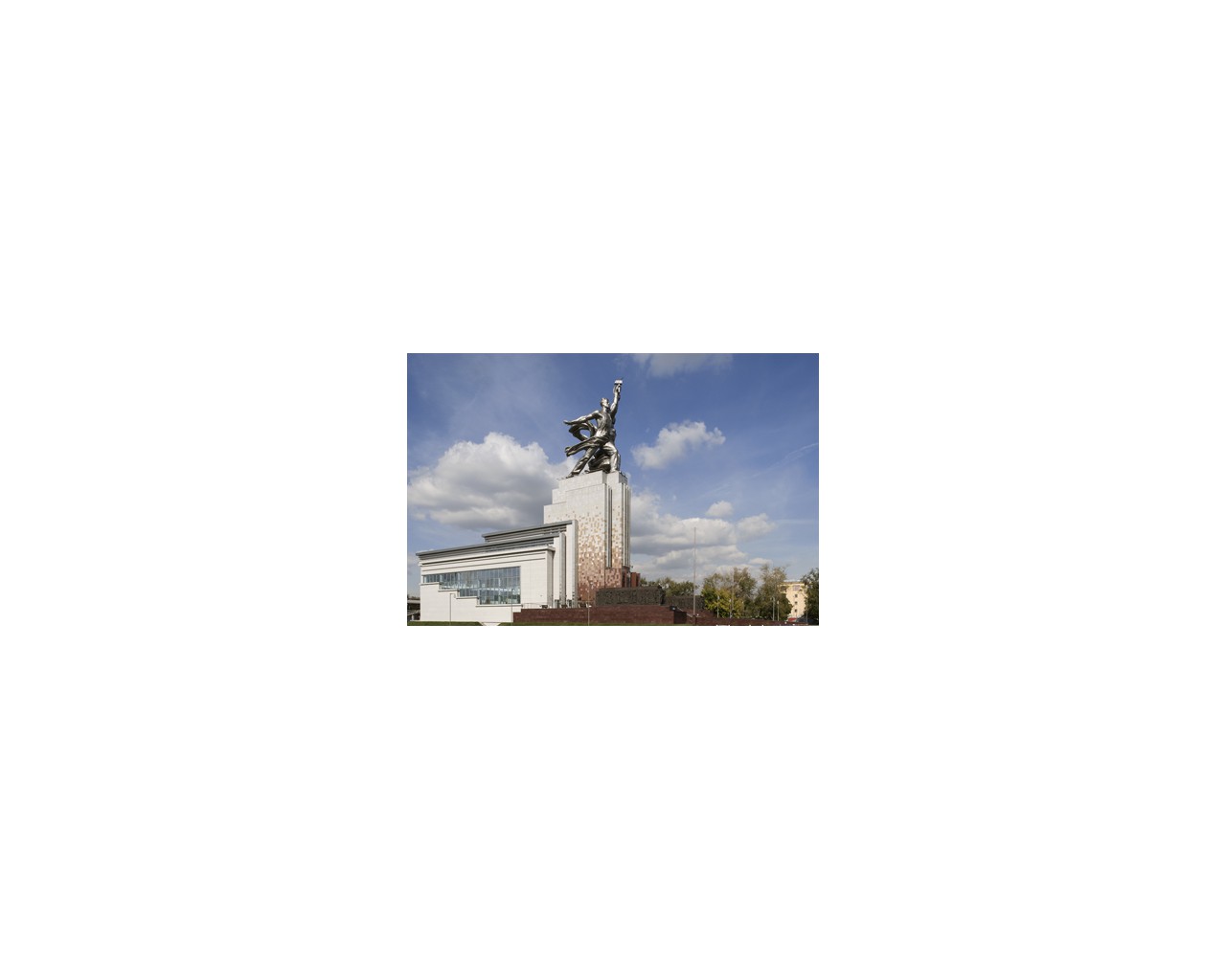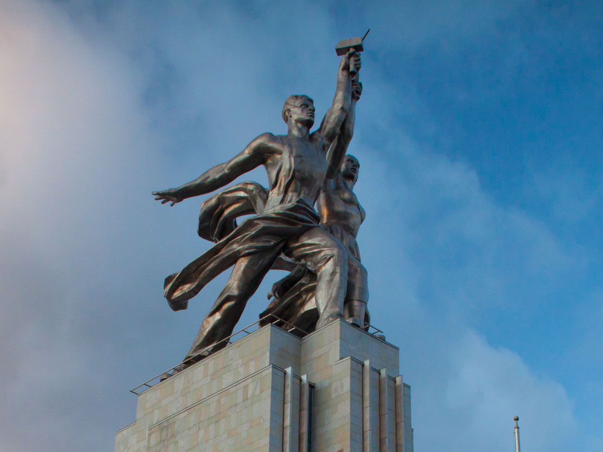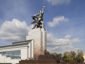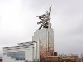 Скульптура была создана для советского павильона на Всемирной выставке в Париже в 1937 году. «Рабочий и колхозница» — выдающийся памятник монументального искусства, «идеал и символ советской эпохи», представляющий собой динамичную скульптурную группу из двух фигур с поднятыми над головами серпом и молотом. Автор — Вера Мухина; концепция и композиционный замысел архитектора Бориса Иофана. Монумент выполнен из нержавеющей хромоникелевой стали. Высота около 25 м (высота павильона-постамента — 33 м). Общий вес — 185 тонн.