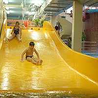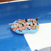 Общая площадь - 2,5 кв км. Для изготовления горок используется современный высокопрочный пластик (стекловолокно с гелевым покрытием).Все поверхности в пешеходной зоне на дорожках, платформах, лестницах, в зоне выхода из бассейнов выполнены из нескользящего материала (имитация прессованного песка).