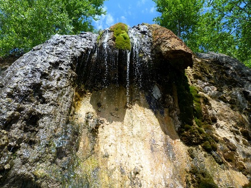 Водопад берет свое начало из недр горы, вытекая родником, и падает с высоты около шести метров прямо в реку Инзер.