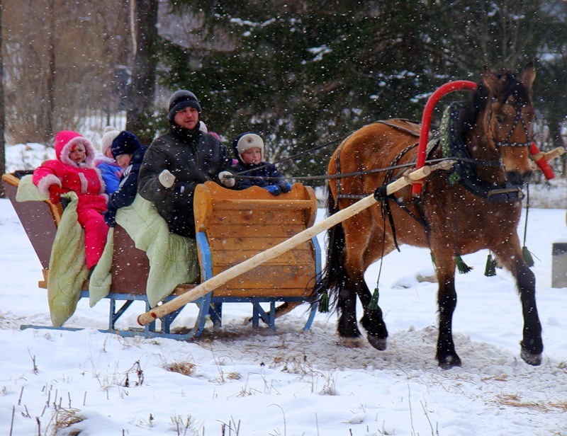- катание на конных экипажах, санях;