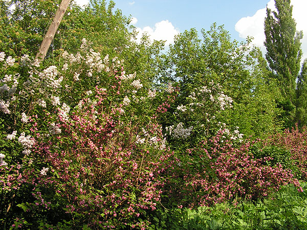Биологическое загрязнение растительного покрова сада и прилежащих территорий чужеземными растениями, такими как борщевик Сосновского (Heracleum sosnowskyi Manden.), пузыреплодник калинолистный (Physocarpus opulifolius (L.) Maxim.), эхиноцистис лопастной (Echinocystis lobata (Michx.) Torr. et. Gray), клен американский (Acer negundo L.), галинзога реснитчатая (Galinsoga ciliata (Rafin.) S. Blake) и г. мелкоцветковая (G. parvifloraCav.). Эти виды вначале специально выращивались в разных отделах сада, но впоследствии успешно «ушли» из-под культурного воздействия и играют теперь существенную роль в сложении сорно-рудеральных группировок в саду и за его границами. Тенденцию к расселению имеют лаконос американский (Phytolacca americana L.), черемуха птичья (Padus aviumMill.), груша уссурийская (Pyrus ussuriensis Maxim.), клен Гиннала (Acer ginnala Maxim.), бузина черная (Sambucus nigra L.). Эти растения размножаются семенами и вегетативно только на территории сада, за его пределами не обнаружены.