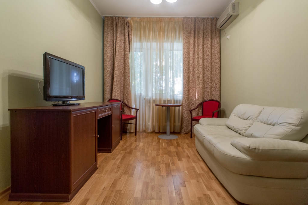 Это плюсы, но есть и существенные минусы, над которыми надо работать руководству санатория. Это -организация досуга. Для тех, кто собирается сюда и везет много вечерних нарядов - на танцы не рассчитывайте! Организуются поездки в сан.им. Ленина на фильмы, концерты, экскурсии, но с танцами туго. Вывод: хотите отдохнуть душой сколачиваете вокруг себя компанию и зажигайте сами. Не ждите, никто за вас это не сделает. Еще один минус -это организация отъезда отдыхающих. Не рассчитывайте, что вы сможете здесь забронировать билет на обратную дорогу. Этой услуги здесь нет, как и нет того, что кто-то внятно скажет вам во сколько здесь пройдет маршрутка, которая доставит вас пусть не до автовокзала, а хотя бы до Парка Победы. Надейтесь только на себя. Заранее ищите тех, кто отъезжает в ваш день на машине и договаривайтесь, либо попытайте счастье с маршруткой ( авось и придет!), ну и крайняя мера -вызов такси. Таксисты берут порядком 800 руб.