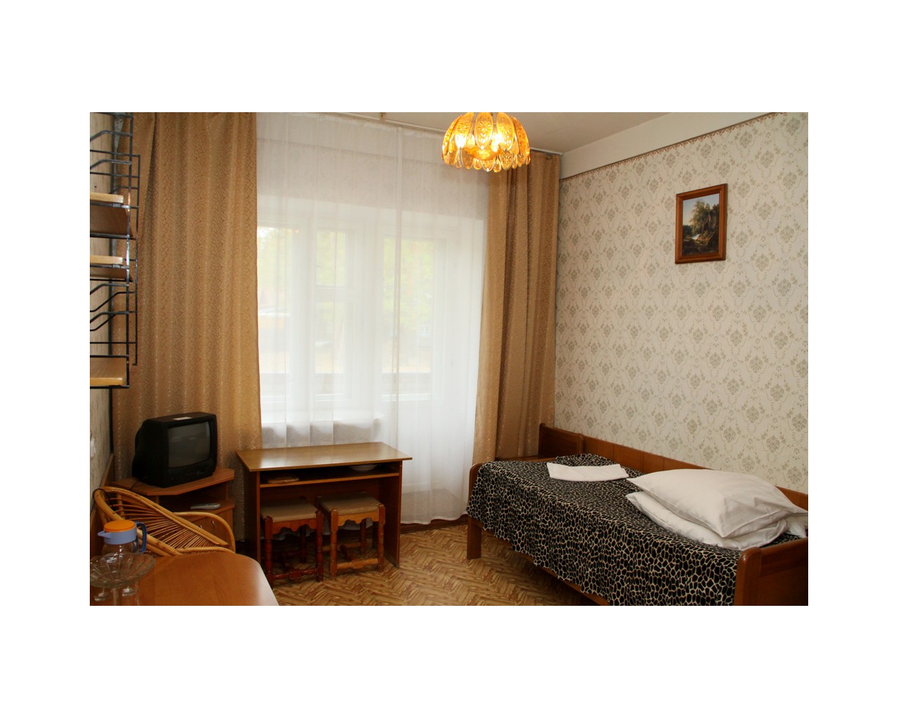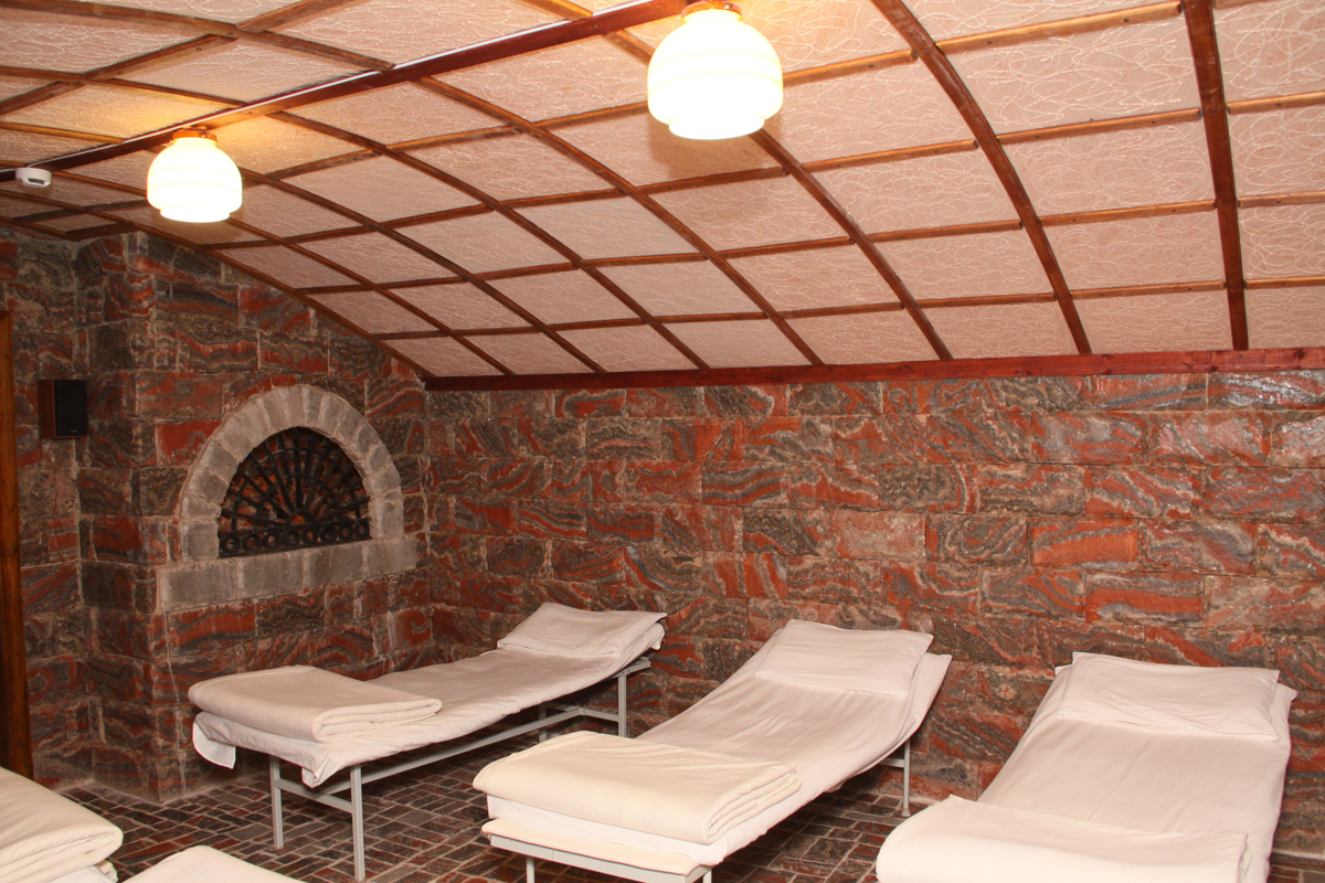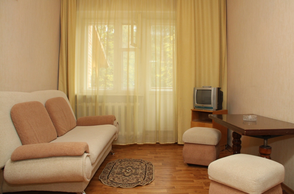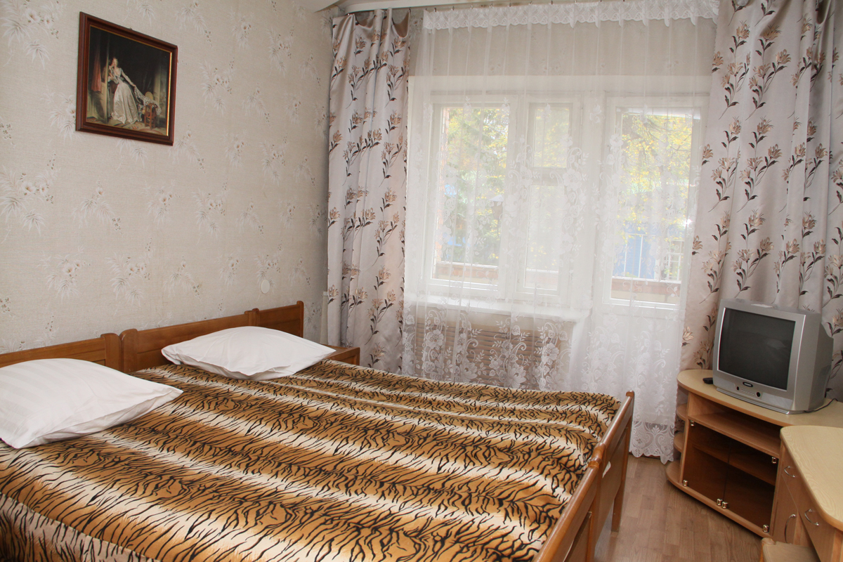 Номер 122 "люкс" в здании санатория оказался просто бомжатником. Устойчивый запах старой мебели, матрасы, одеяла и подушки наверно видели наших прабабушек. В номере темно,абсолютно везде во всех люстрах горит по одной лапочке. Ванная комната убирается только всерединке, старая плитка отваливается. В углах висят на паутине высохшие пауки, чьи то волосы и пыль. Сантехника на грани выживания, а душевая лейка поливает на все 360 градусов. Питание советское, чай - сладкая вода чуть чуть покрашенная заваркой. Пьяный персонал из местных жителей. В общем из санатория выжимают остатки, не вкладывая в ремонт зданий, замену мебели и обслуживания ни копейки.