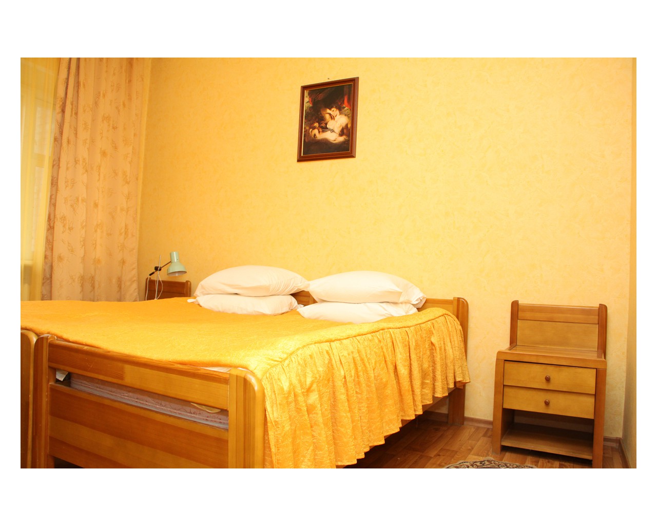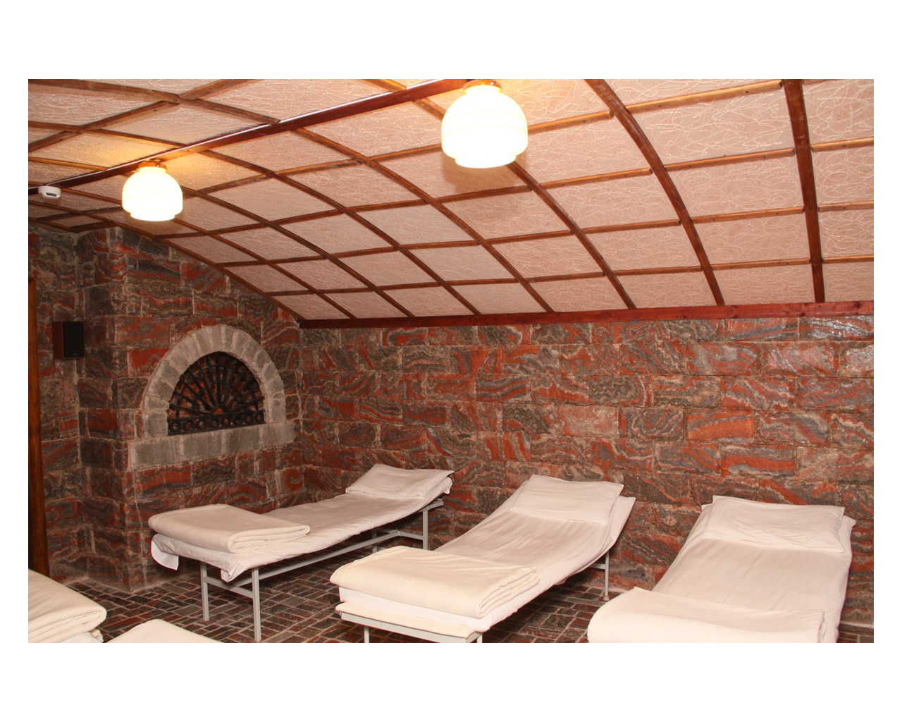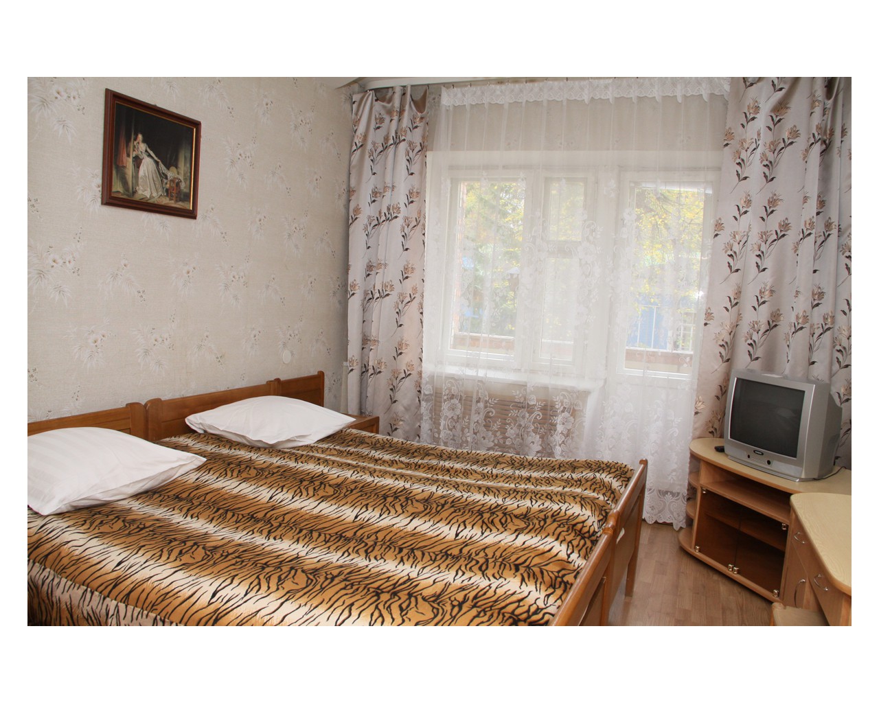 Номер 122 "люкс" в здании санатория оказался просто бомжатником. Устойчивый запах старой мебели, матрасы, одеяла и подушки наверно видели наших прабабушек. В номере темно,абсолютно везде во всех люстрах горит по одной лапочке. Ванная комната убирается только всерединке, старая плитка отваливается. В углах висят на паутине высохшие пауки, чьи то волосы и пыль. Сантехника на грани выживания, а душевая лейка поливает на все 360 градусов. Питание советское, чай - сладкая вода чуть чуть покрашенная заваркой. Пьяный персонал из местных жителей. В общем из санатория выжимают остатки, не вкладывая в ремонт зданий, замену мебели и обслуживания ни копейки.