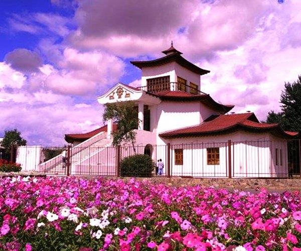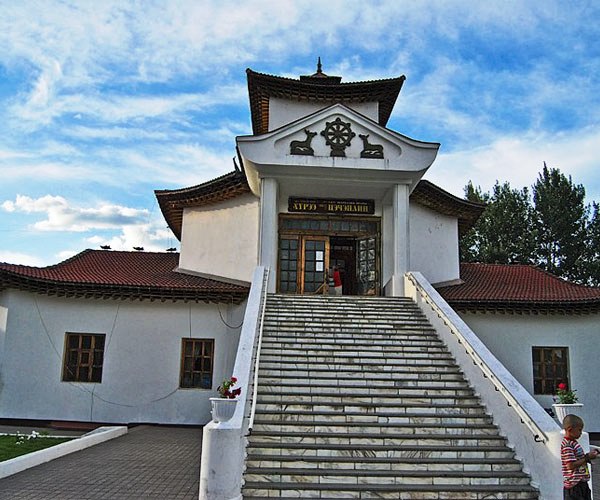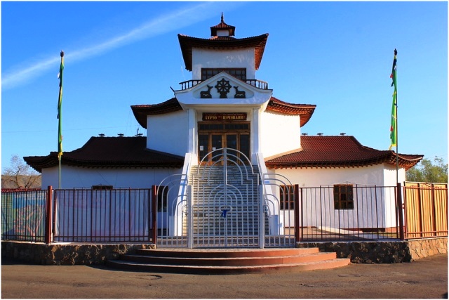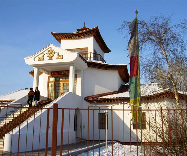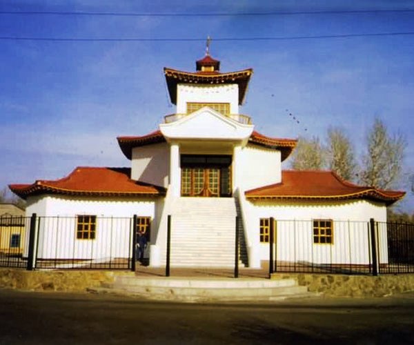 Новый храм по проекту архитектора Фан Че Ира сразу стал одной из визитных карточек Кызыла и приобрел большую популярность. Построен в рекордно короткие сроки: 17 февраля 1998 г. президент Тувы заложил символический камень в его основание, а в октябре 1999 года храм уже освятил его святейшество Богдо-Гэгэн IX, третья по значимости фигура в буддийском мире после далай-ламы и панчен-ламы. Значительный вклад в строительство внесли ряд спонсоров, в том числе коллектив «Водоканала», выполнивший ряд работ бесплатно, и земляк тувинцев Сергей Шойгу, внесший 15 тыс. долларов из личных средств. На первом этаже здания располагается резиденция представителей далай-ламы XIV. На втором этаже, куда ведет великолепная мраморная лестница, - молельный зал, где находится алтарь с яркими бронзовыми, серебряными и позолоченными бурханами, изображения Будды и далай-ламы XIV. Храм удачно сочетает традиции культовой восточной архитектуры и новые строительные технологии.