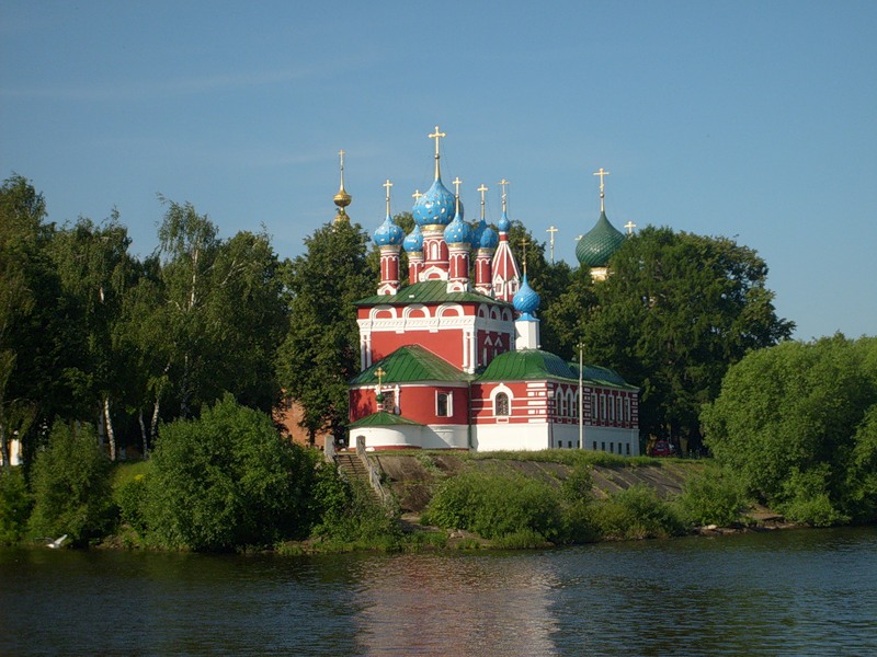 Красно-белая церковь Димитрия На Крови построена по указу царей Ивана и Петра Алексеевичей на том месте, где по преданию 15 мая 1591 года погиб царевич Дмитрий.