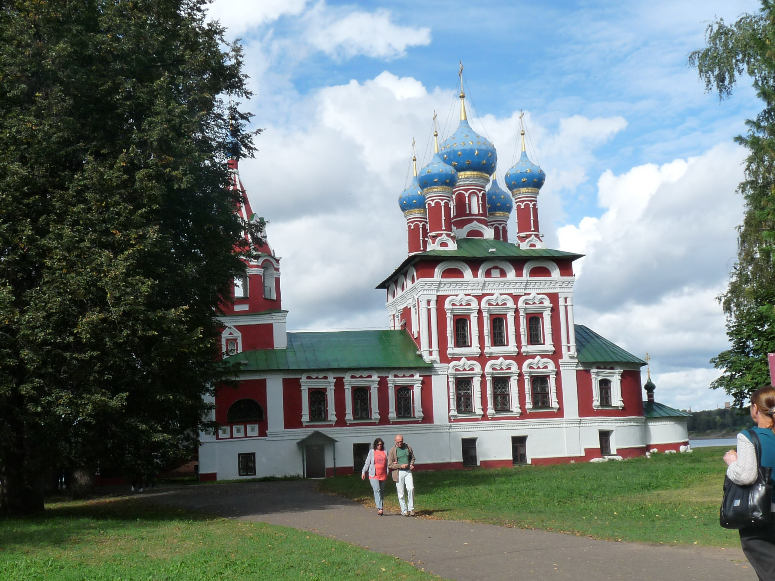 Красно-белая церковь Димитрия "на Крови" построена по указу царей Ивана и Петра Алексеевичей на том месте, где по преданию 15 мая 1591 года погиб царевич Дмитрий.