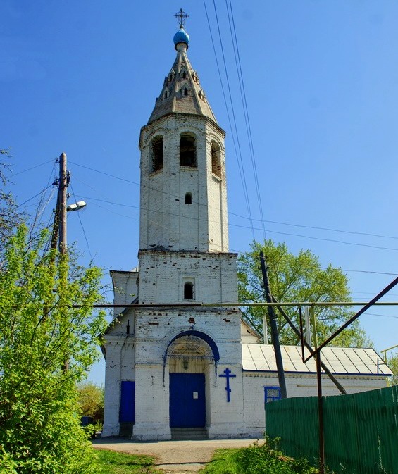 Церковь выстроена из кирпича. Двусветный одноглавый четверик с небольшой трапезной и шатровой колокольней, декор выдержан в духе зодчества XVII в. Никольский придел пристроен в 1814. Закрыт не позже 1930-х. Отреставрирован во 2-й пол. ХХ в., придел разобран. В 1990 возвращён верующим.