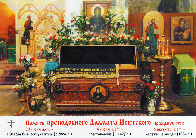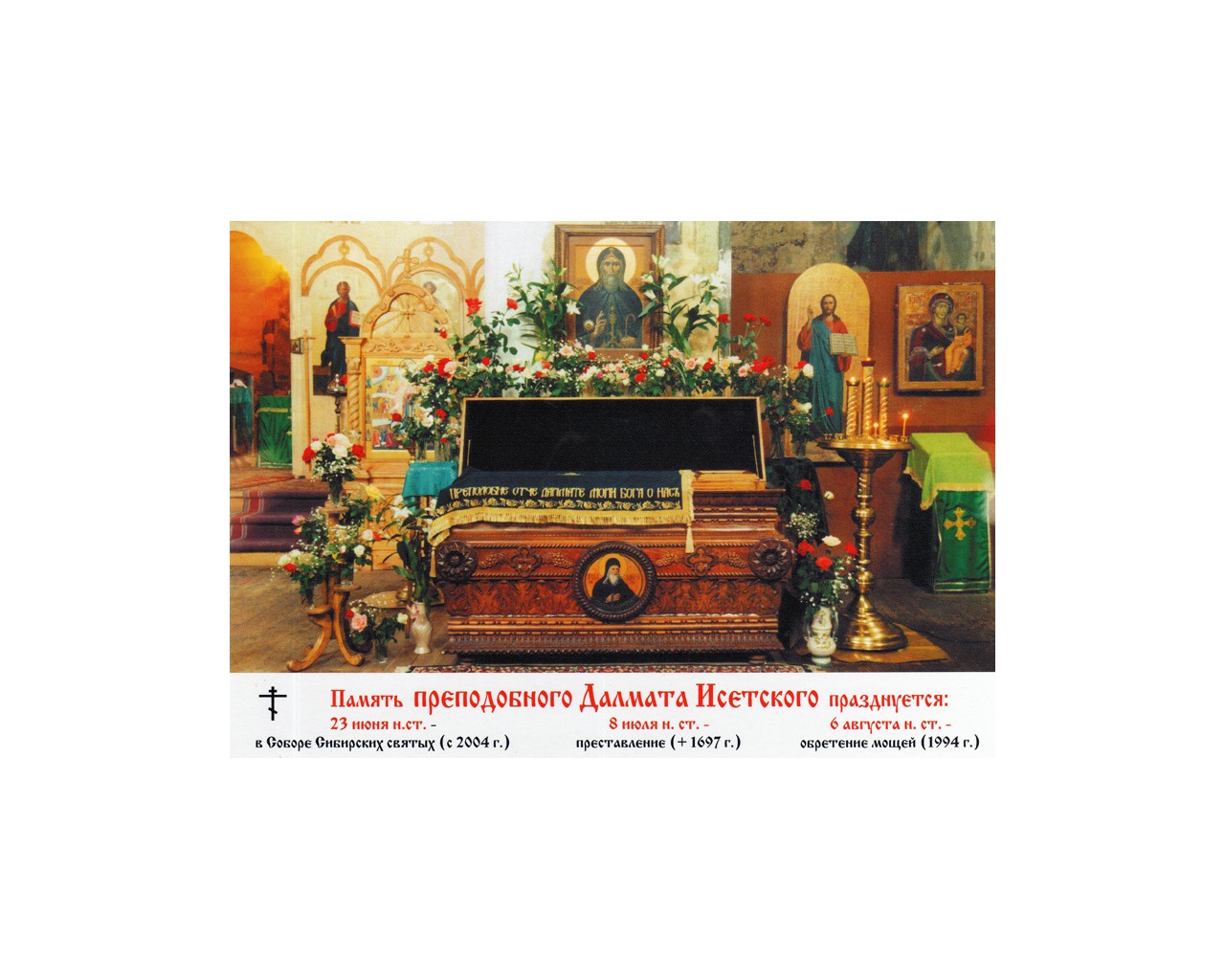5. Источниками сведений по истории Д. м. являются написанное сыном прп. Далмата архим. Исааком (Мокринским) «Известие об основании Далматовского монастыря» (Вкладные книги Далматовского Успенского мон-ря. 1992. С. 184-186), а также документы архива Д. м. (ГА Шадринска Курганской обл. Ф. 224) и фонда Сибирского приказа (РГАДА).