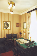 4. Экспозиция посвящена детским и юношеским годам жизни писателя. Дом, сохранившийся до наших дней почти в своем первозданном виде, помогает понять, как из маленького «пушкаря» Леонид Андреев стал одним из самых популярных писателей начала XX века, талантливым и до сих пор не воплощенным драматургом, художником, непревзойденным фотографом. Все начиналось именно здесь: и извечные вопросы о Боге и Дьяволе внутри человека и в судьбе человека, о Хаосе и Гармонии, о Жизни и Смерти, которые Леонид Андреев задавал всегда с предельной откровенностью и болью и на которые пытался ответить в своем творчестве; и увлечение драматическим действом, вылившееся в создание своего театра, с особым художественным миром и эстетической системой, принципиально новаторского, обозначившего истоки многих направлений и течений в мировом искусстве XX века; первые робкие рисунки — и интереснейшие работы Андреева-художника: высоко оцененные В. Серовым, великолепные цветные стереофотографии (автохромы), которые до сих пор поражают художественным мастерством Андреева-фотографа, его провидческая мечта о превращении «великого немого» в широкоэкранный кинематограф. Перешедшая от отца любовь к строительству — и возведение своего дома на Черной речке взамен утраченного, отцовского. Щемящая до боли тоска о море, возникшая в Орле, где одна из речек называлась Пересыханка,— и страстное увлечение морем в конце жизни. Необычайная талантливость, выразившаяся в самых разнообразных формах художественного творчества, составляет Мир Леонида Андреева.